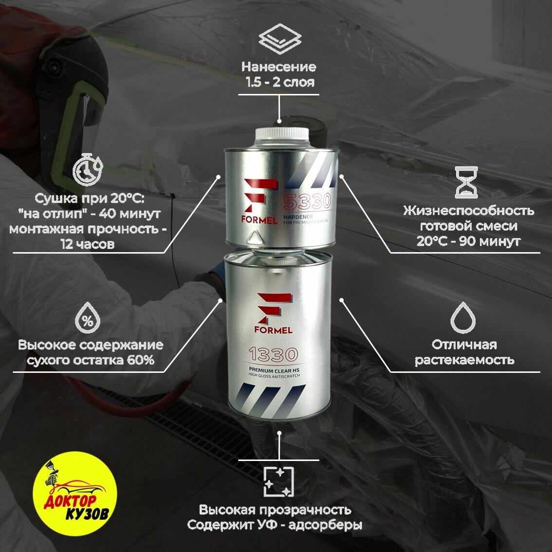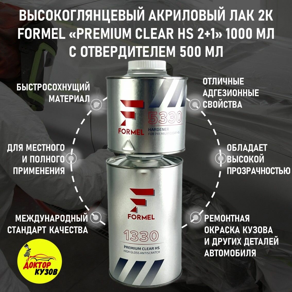 Лак акриловый глянцевый 2К HS 2+1, автомобильный FORMEL, 1 л с отвердителем 0,5 л интересное: