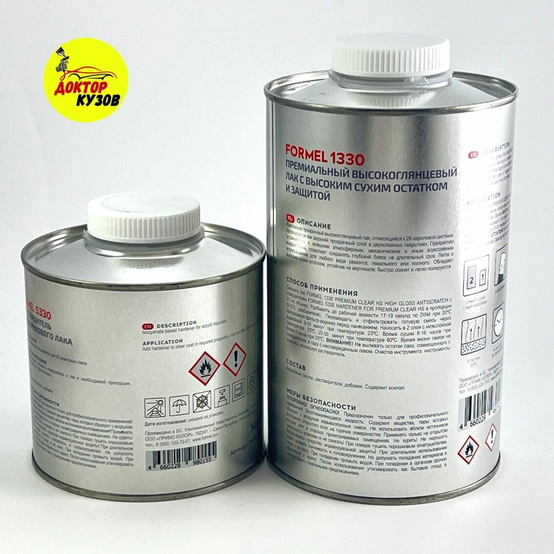 | Комплектация | Лак акриловый глянцевый 2К HS 2+1, автомобильный FORMEL, 1 л с отвердителем 0,5 л |