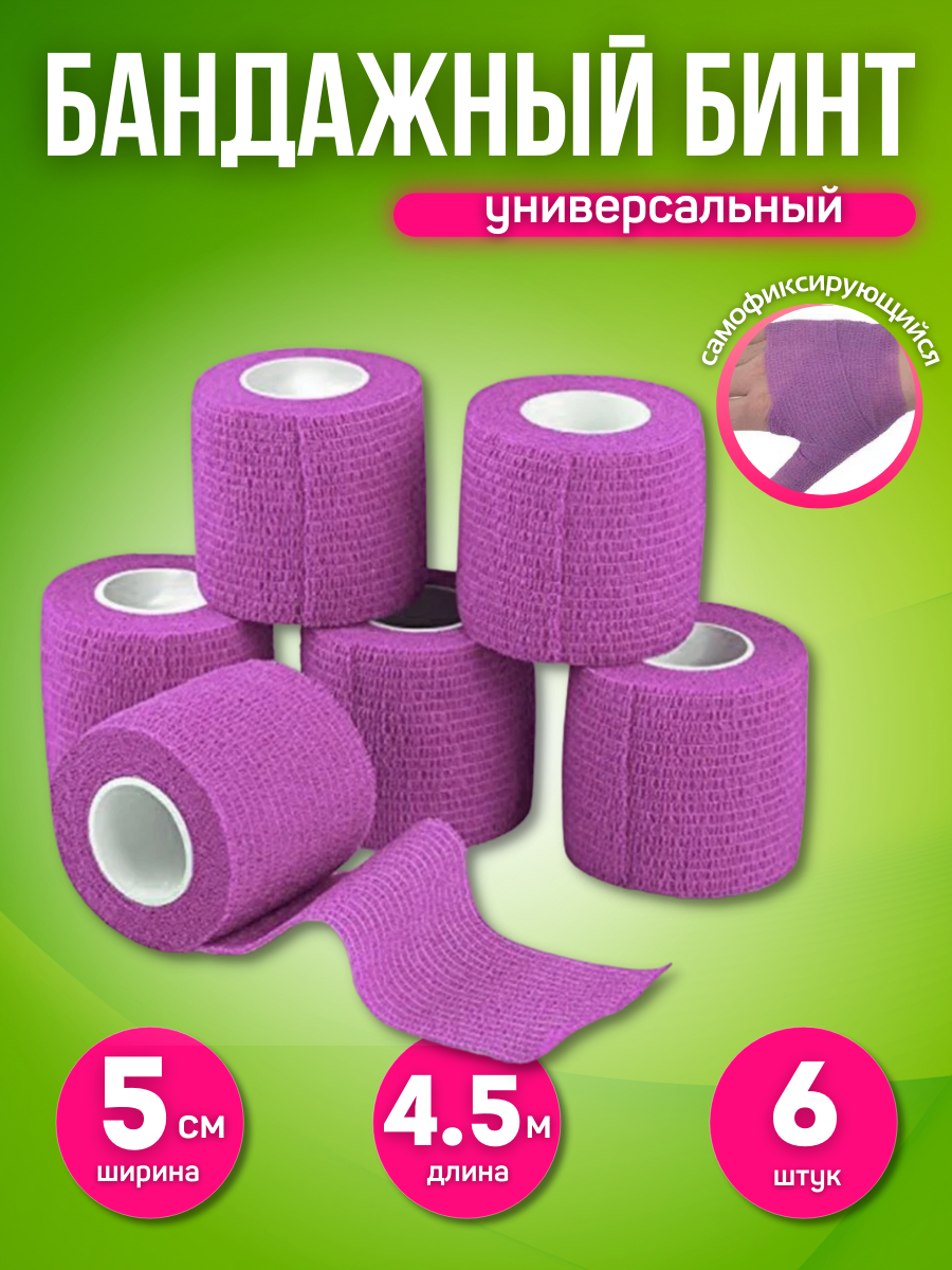Купить Бандажный бинт самофиксирующийся эластичный когезивный для тату фиолетовый - 6 шт