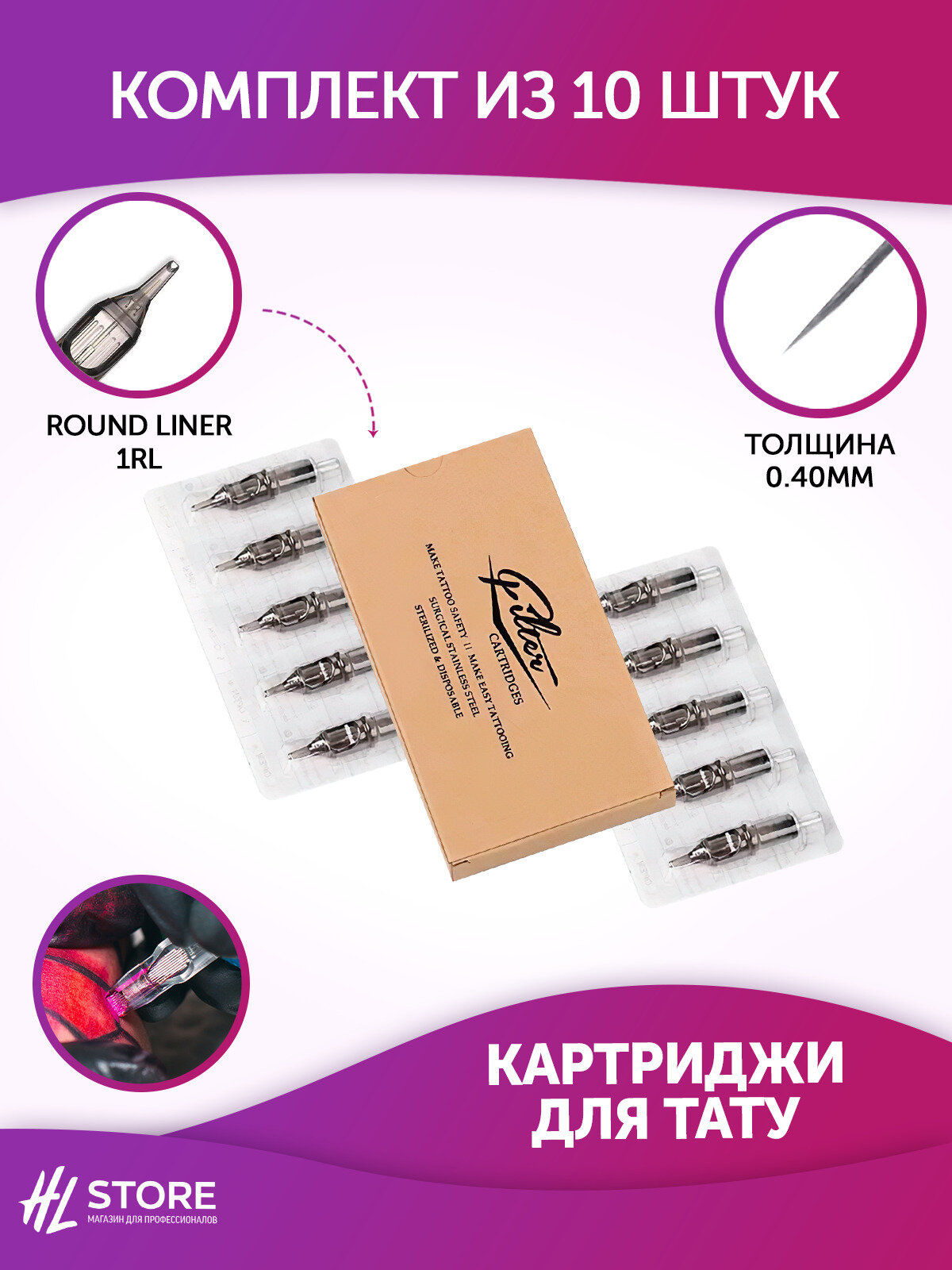 EZ Filter Картриджи для тату Round Liner 1RL 0.40 мм 10шт/уп интересное: