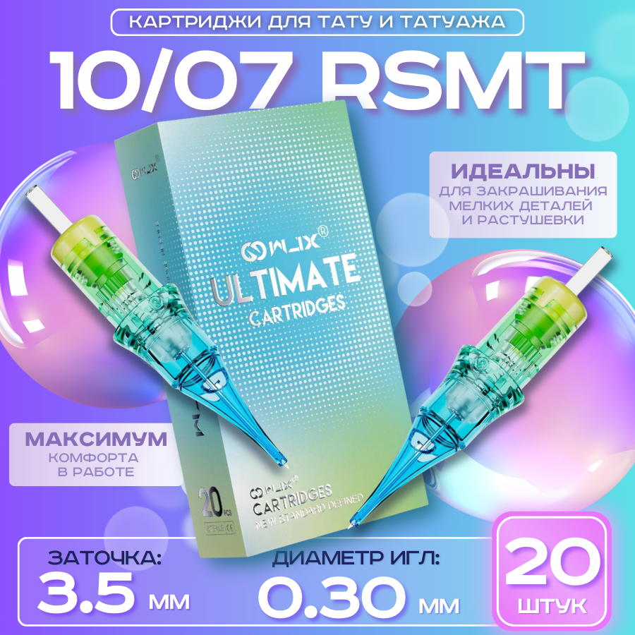 WJX Ultimate - Round Shader 10/07RS 0,30 мм, картриджи для татуировки и перманентного макияжа татуажа - 20 шт/уп.