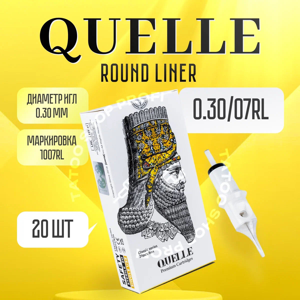 Картриджи для тату и перманентного макияжа QUELLE Premium Round Magnum 30/7RM 0,30мм - 20шт/уп
