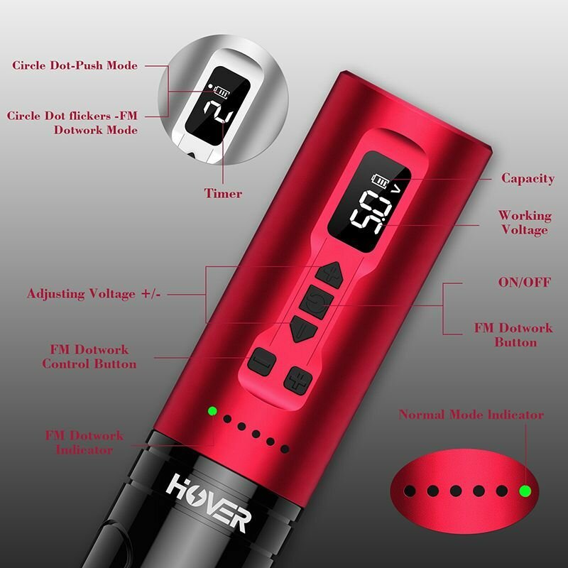 Беспроводная машинка для тату и татуажа с 2-мя режимами работы EZ INKIN HOVER FM Dotwork Red
