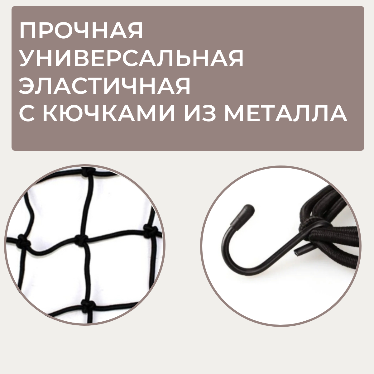 Карман сетка-стяжка багажная для крепления груза, для мотоцикла и автомобиля, 6 металлических крюков, 40 х 40 см. интересное: