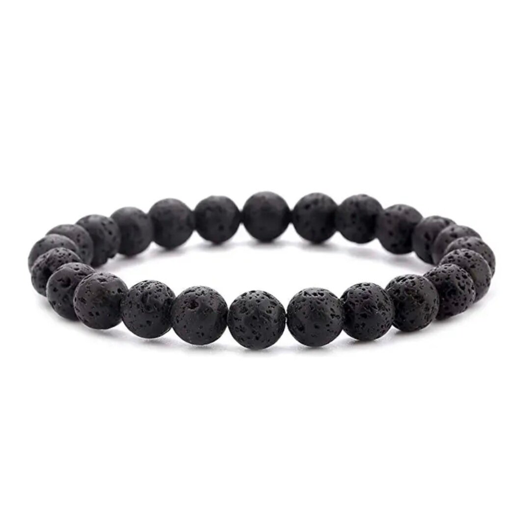 Браслет из Вулканической Лавы, на резинке, бусины 8мм, черный, мужской/женский интересное: