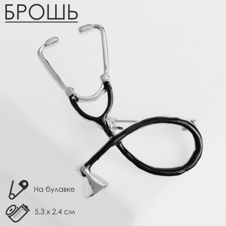 Брошь "Стетоскоп", цвет чёрный в серебре интересное: