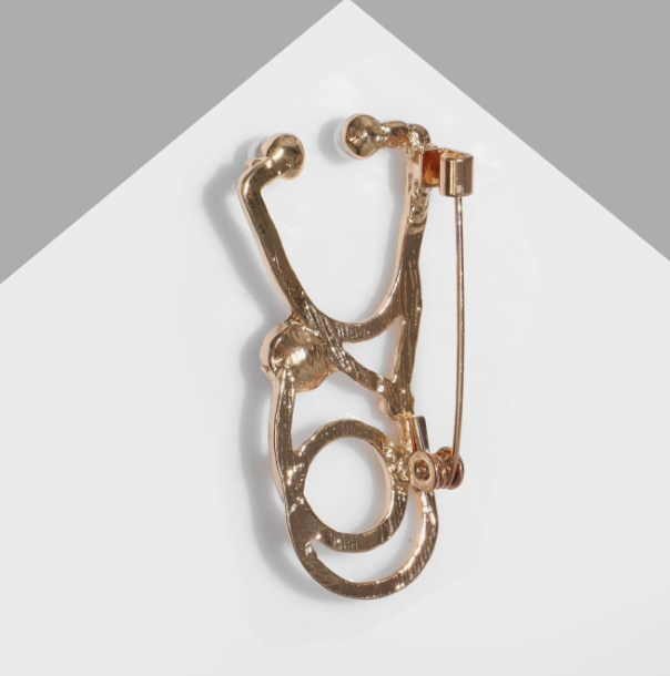 Брошь "Фонендоскоп" врача, цвет белый в золоте интересное: