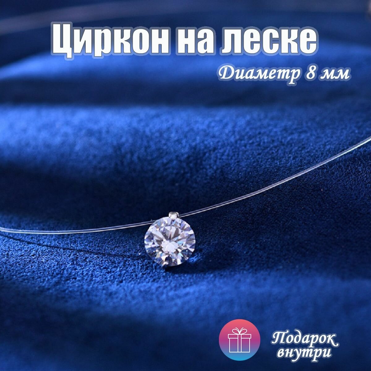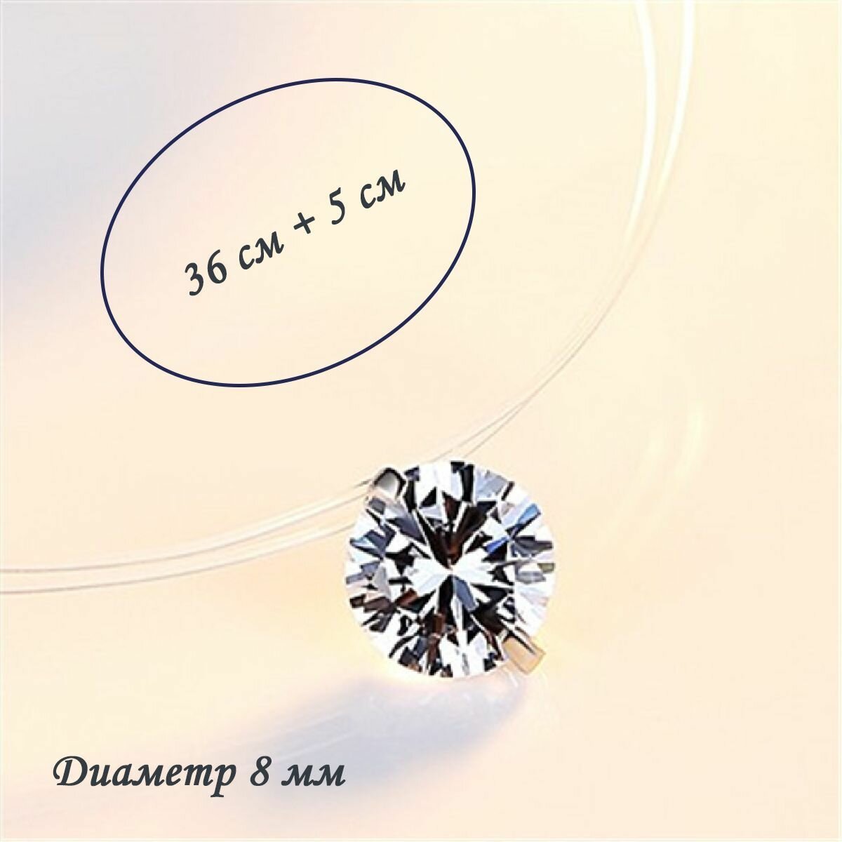 Циркон на леске 8 мм, колье невидимка с регулируемым карабином, подвеска, чокер, кулон кристалл-капля, медальон интересное: