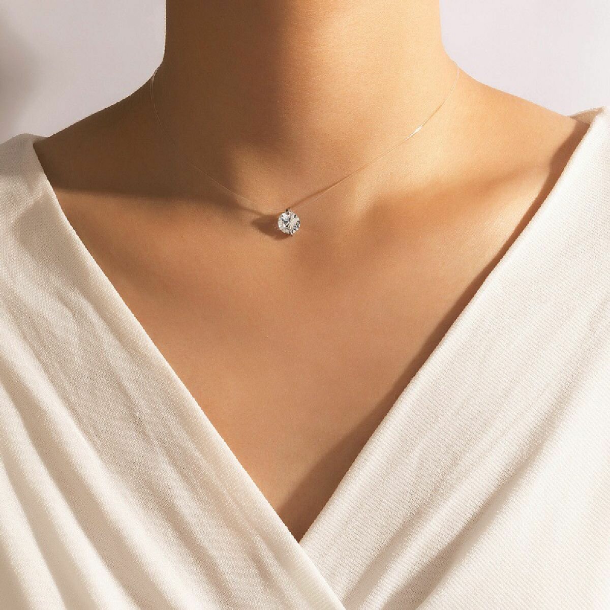 Купить Циркон на леске 8 мм, колье невидимка с регулируемым карабином, подвеска, чокер, кулон кристалл-капля, медальон