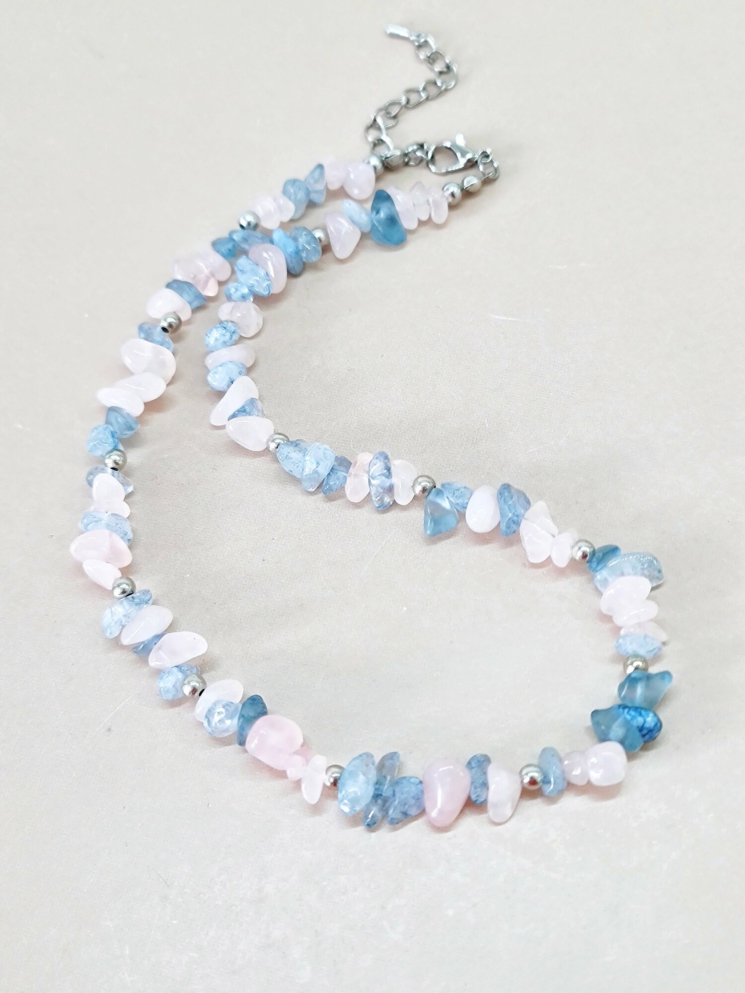 Колье ENJOY Украшения из камней, розовый кварц, аквамарин, длина 45 см, голубой/розовый