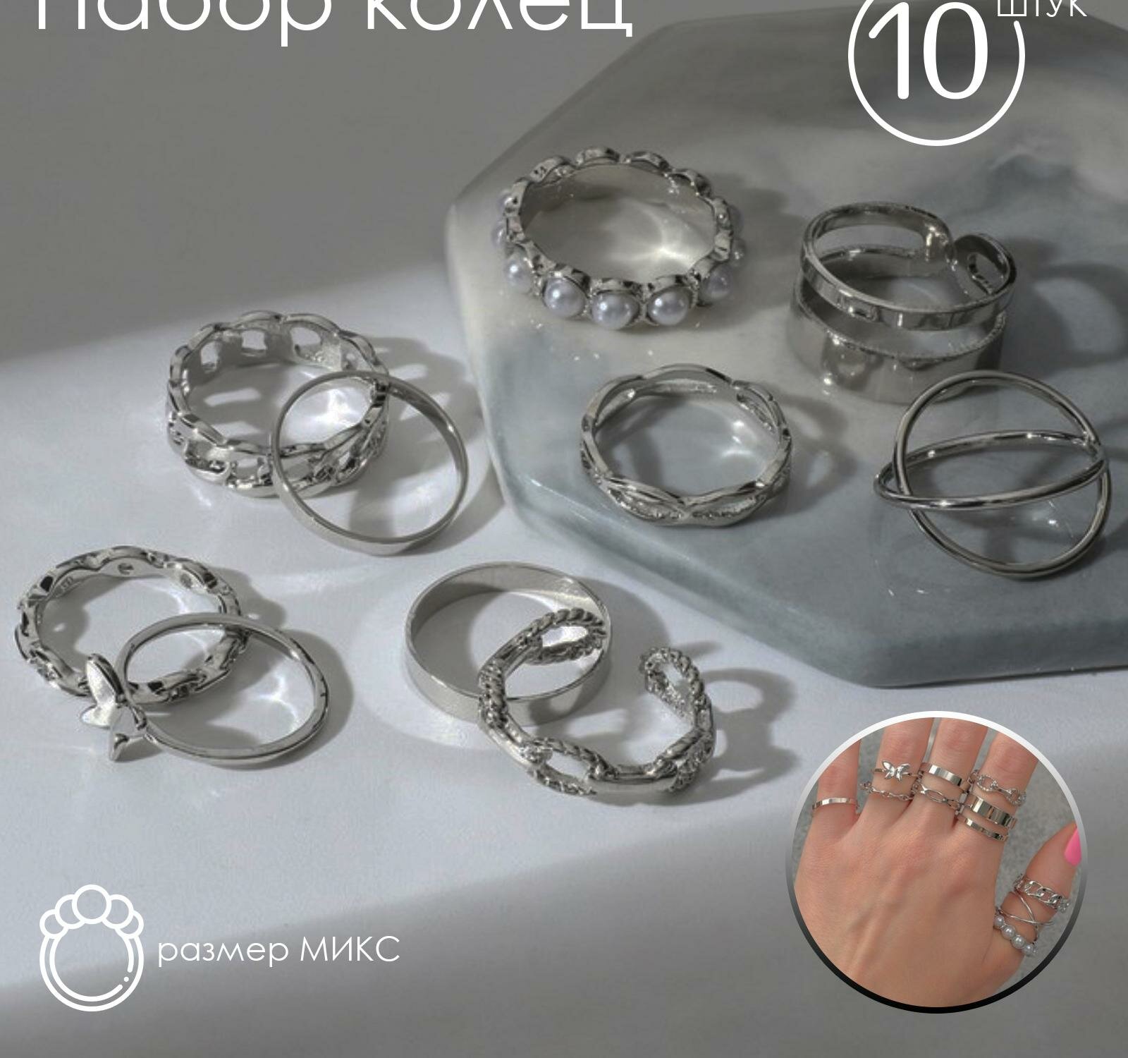 Купить Набор колец 10 штук"Тренд" леди, цвет белый в серебре, размер Микс Queen fair 7789974 .
