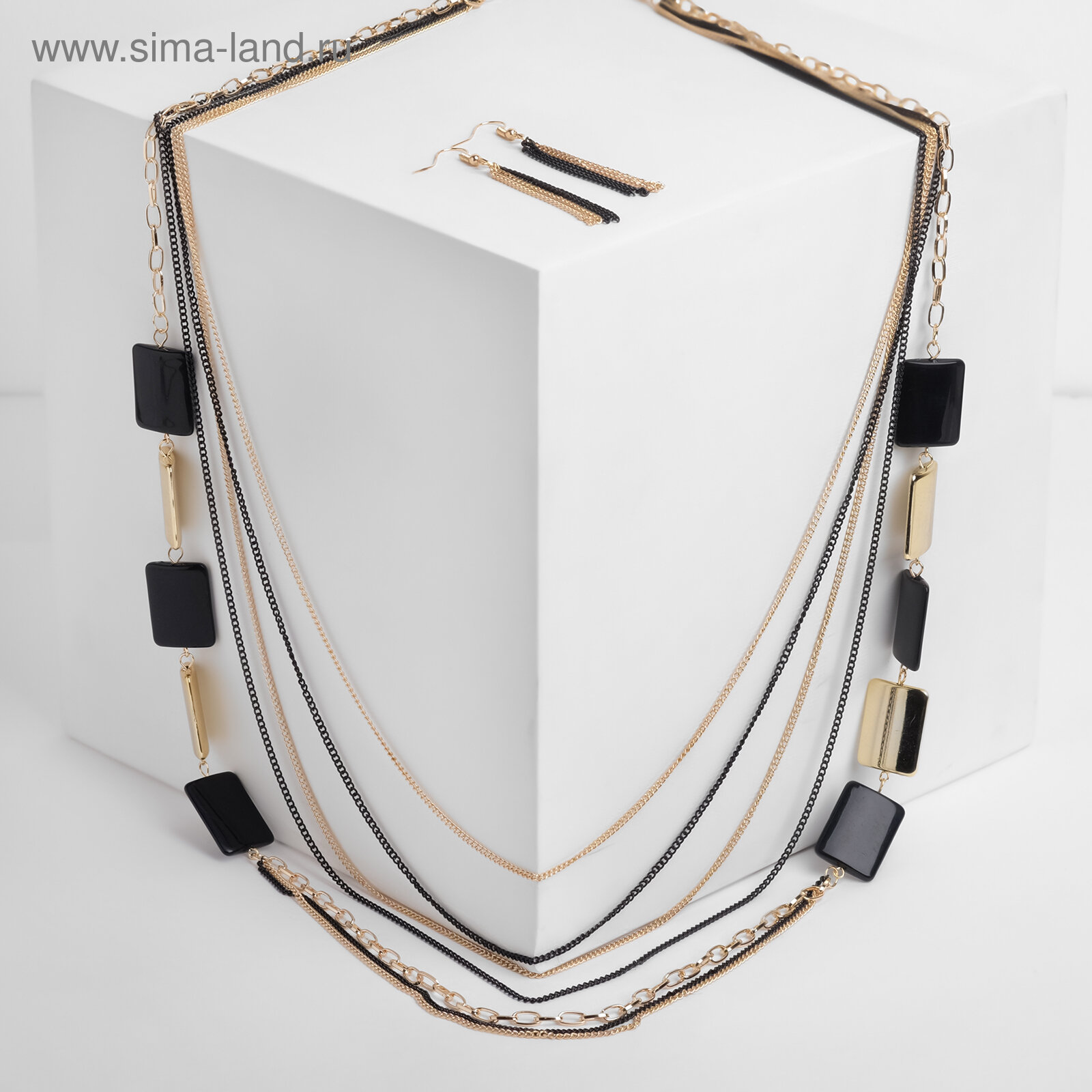 Купить Набор 2 предмета: серьги, бусы"Унисон" прямоугольники, цвет чёрный в золоте Queen fair .