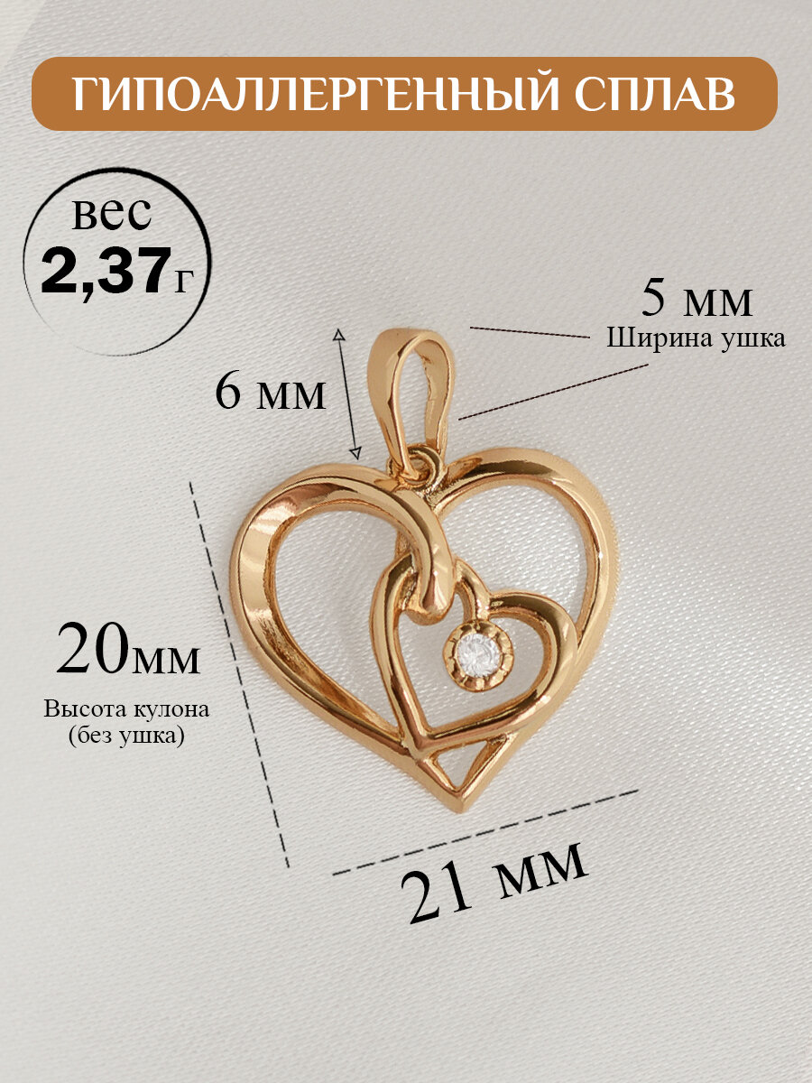 Подвеска на шею позолоченная сердце кулон из медицинского сплава
