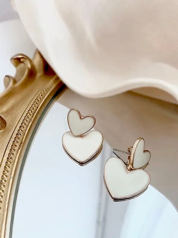 Серьги с сердечком / белые сережки в форме сердца бижутерия интересное:
