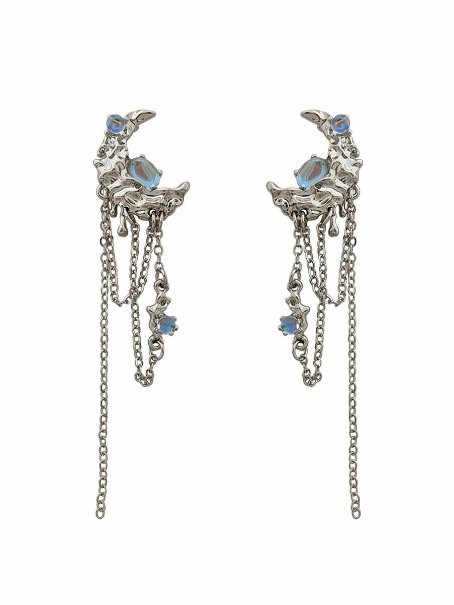 Серьги корейские луна и цепочки лунный камень длинные интересное: