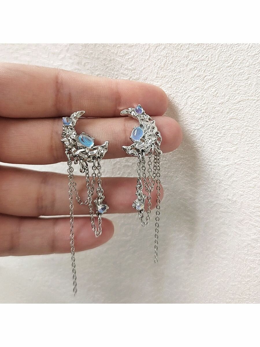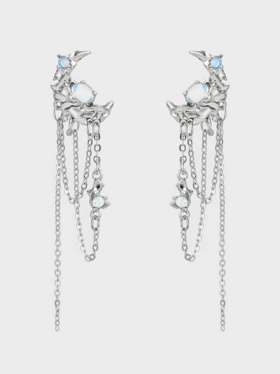 Купить Серьги корейские луна и цепочки лунный камень длинные