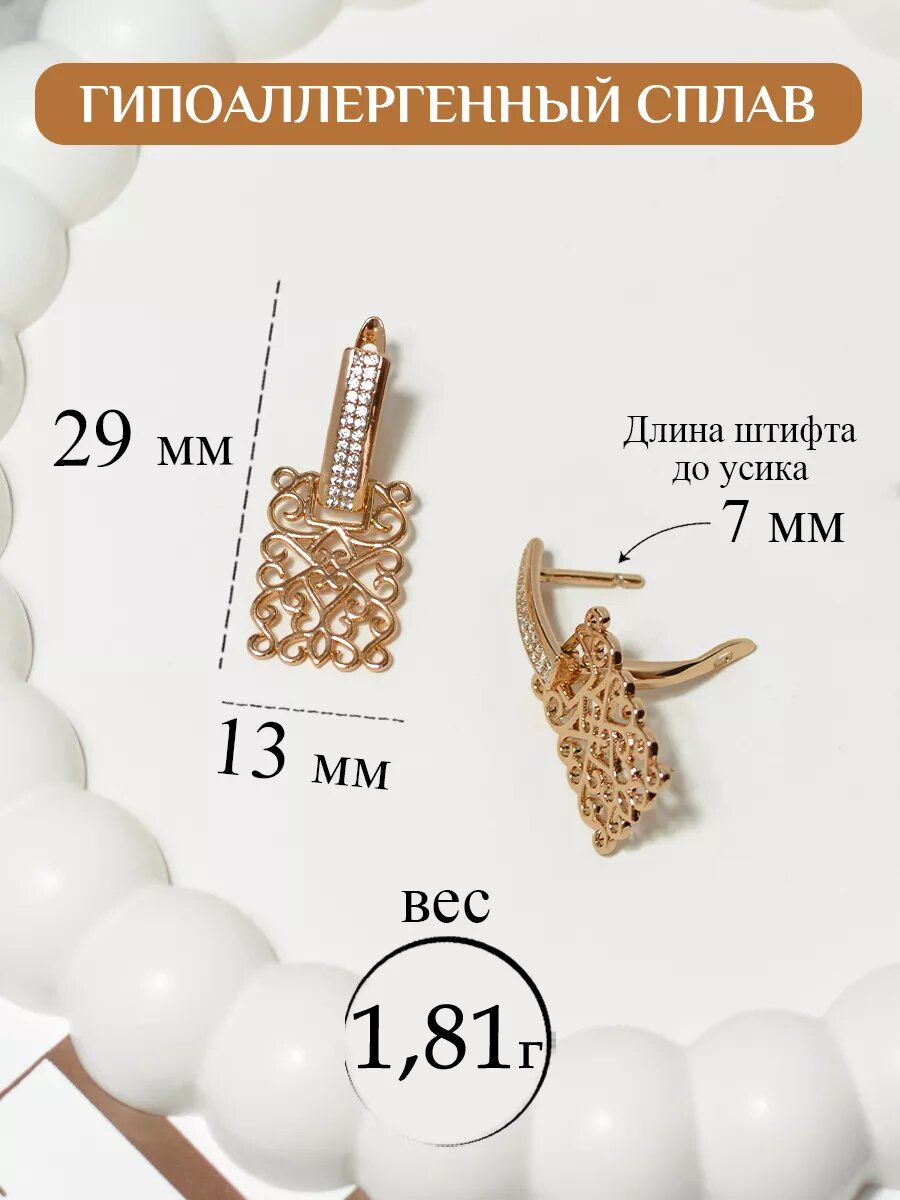 Серьги бижутерия длинные с подвесками, как серьги золотые 585 с английским замком, позолоченные с камнями из медицинского сплава, ювелирный, родирование