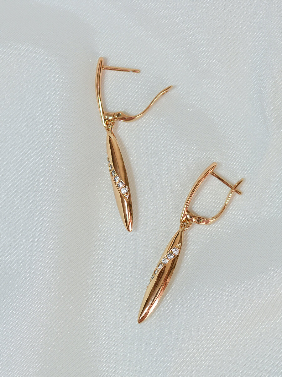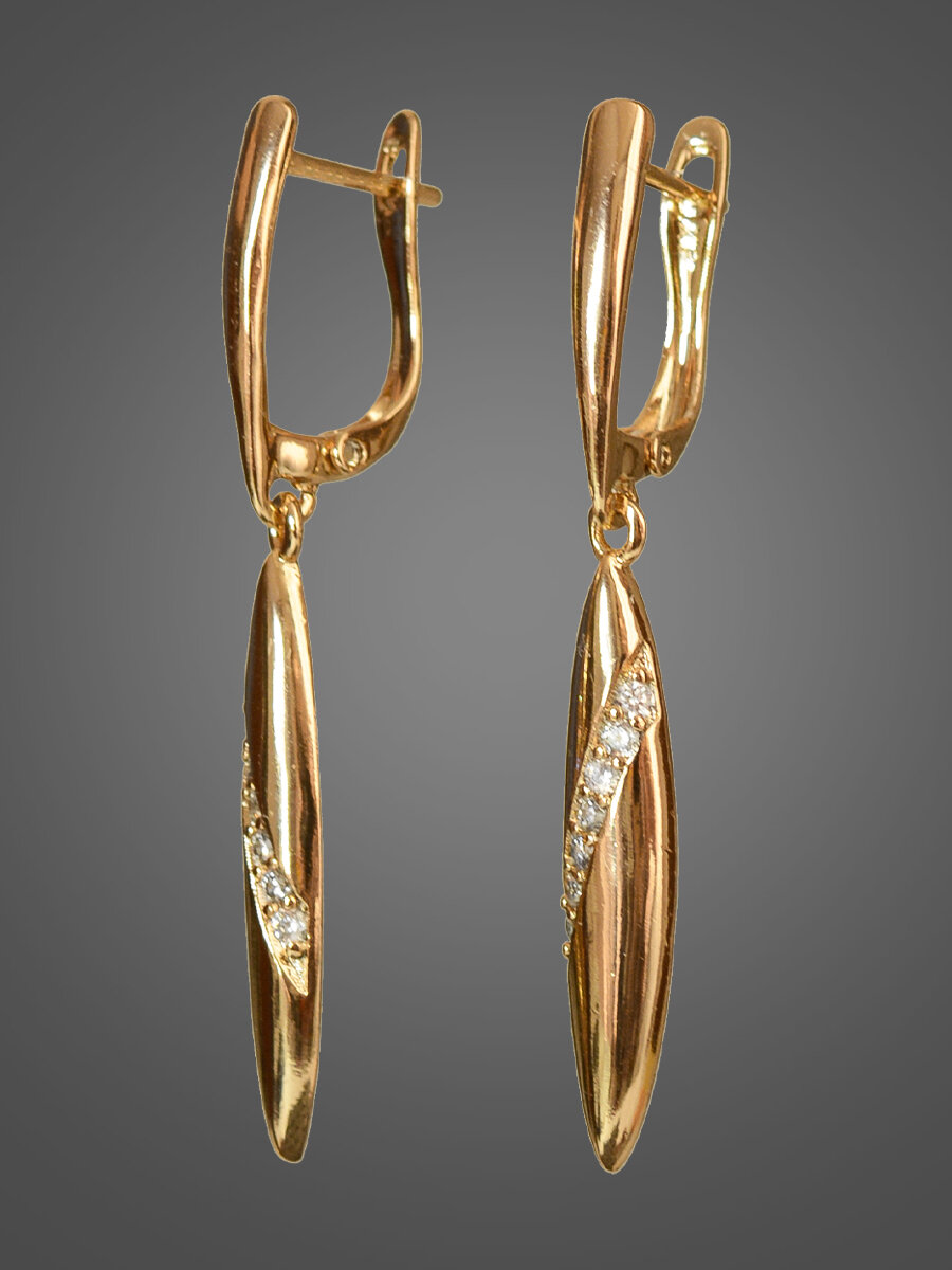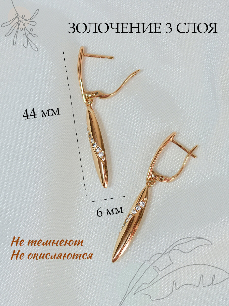 Серьги бижутерия длинные с подвесками, как серьги золотые 585 с английским замком, позолоченные с камнями из медицинского сплава, ювелирный, родирование