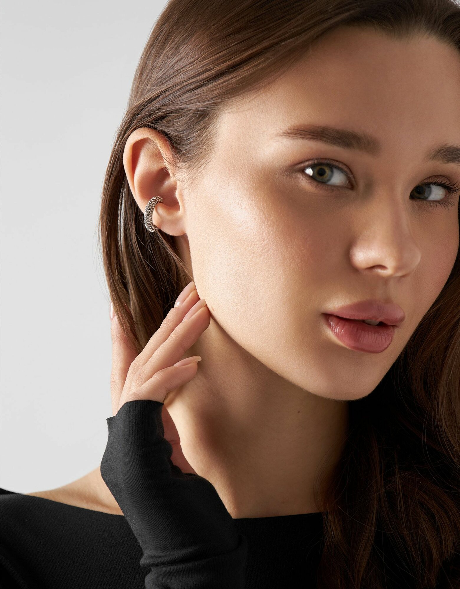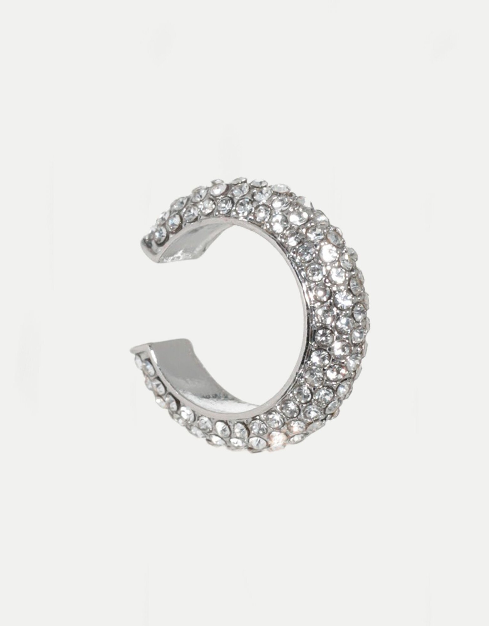 Купить Серьга-кафф, 2 см, металл, серебристая, Кристаллы, Jewelry