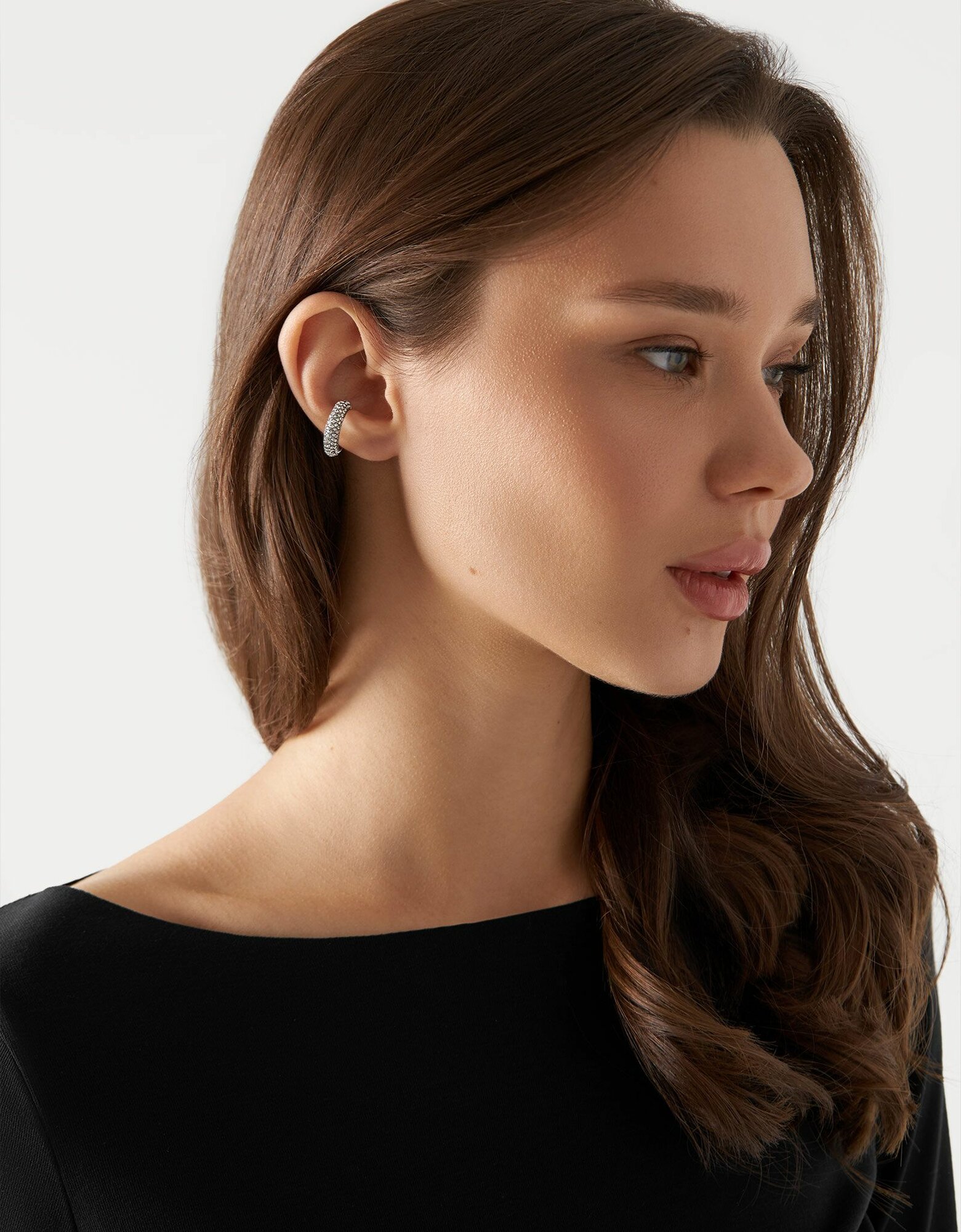 Серьга-кафф, 2 см, металл, серебристая, Кристаллы, Jewelry интересное: