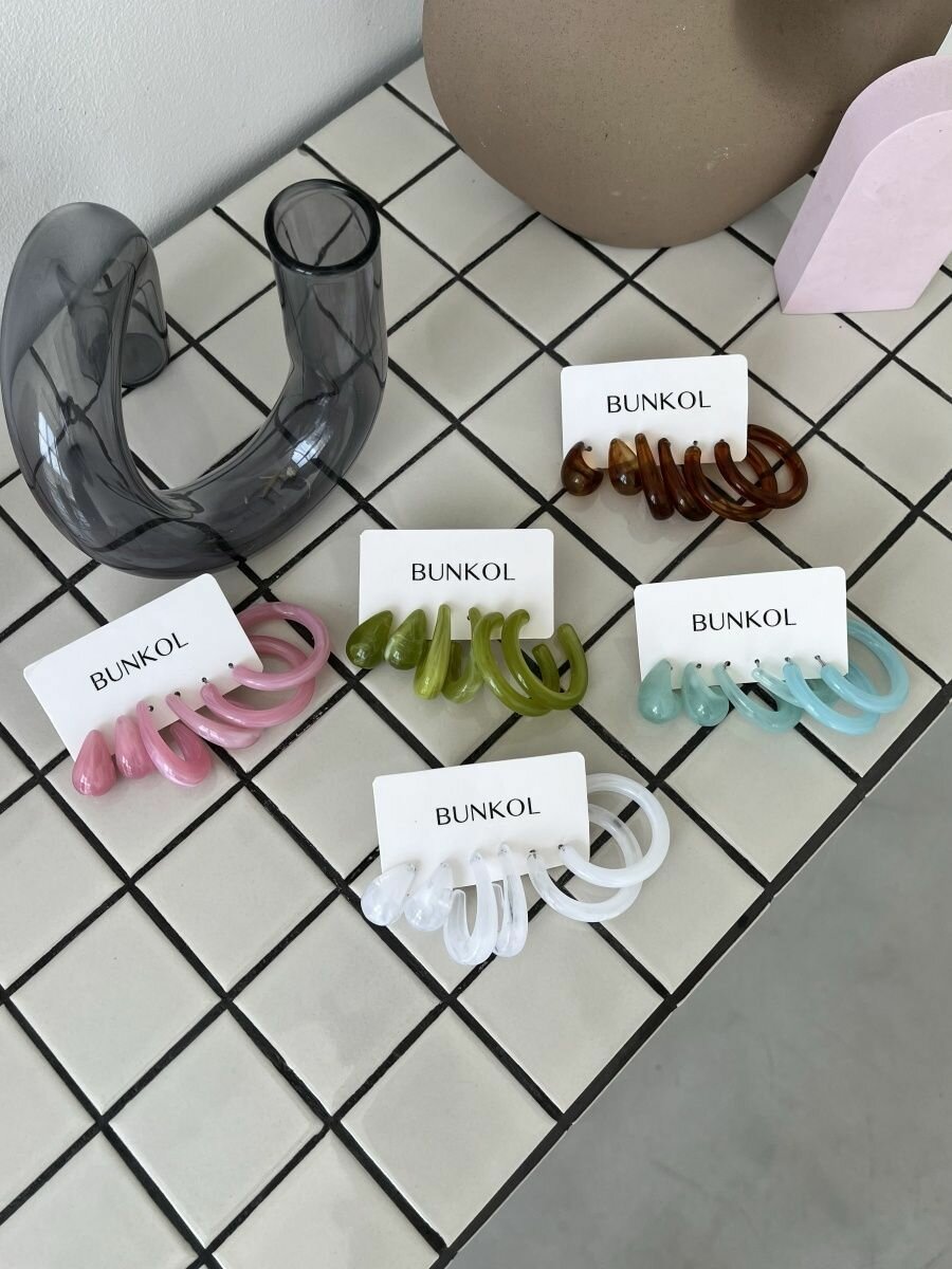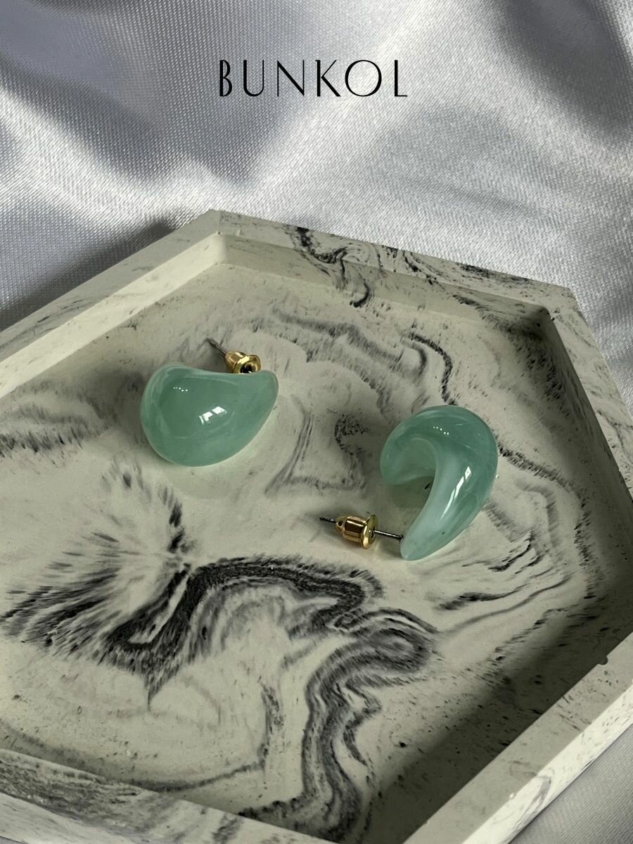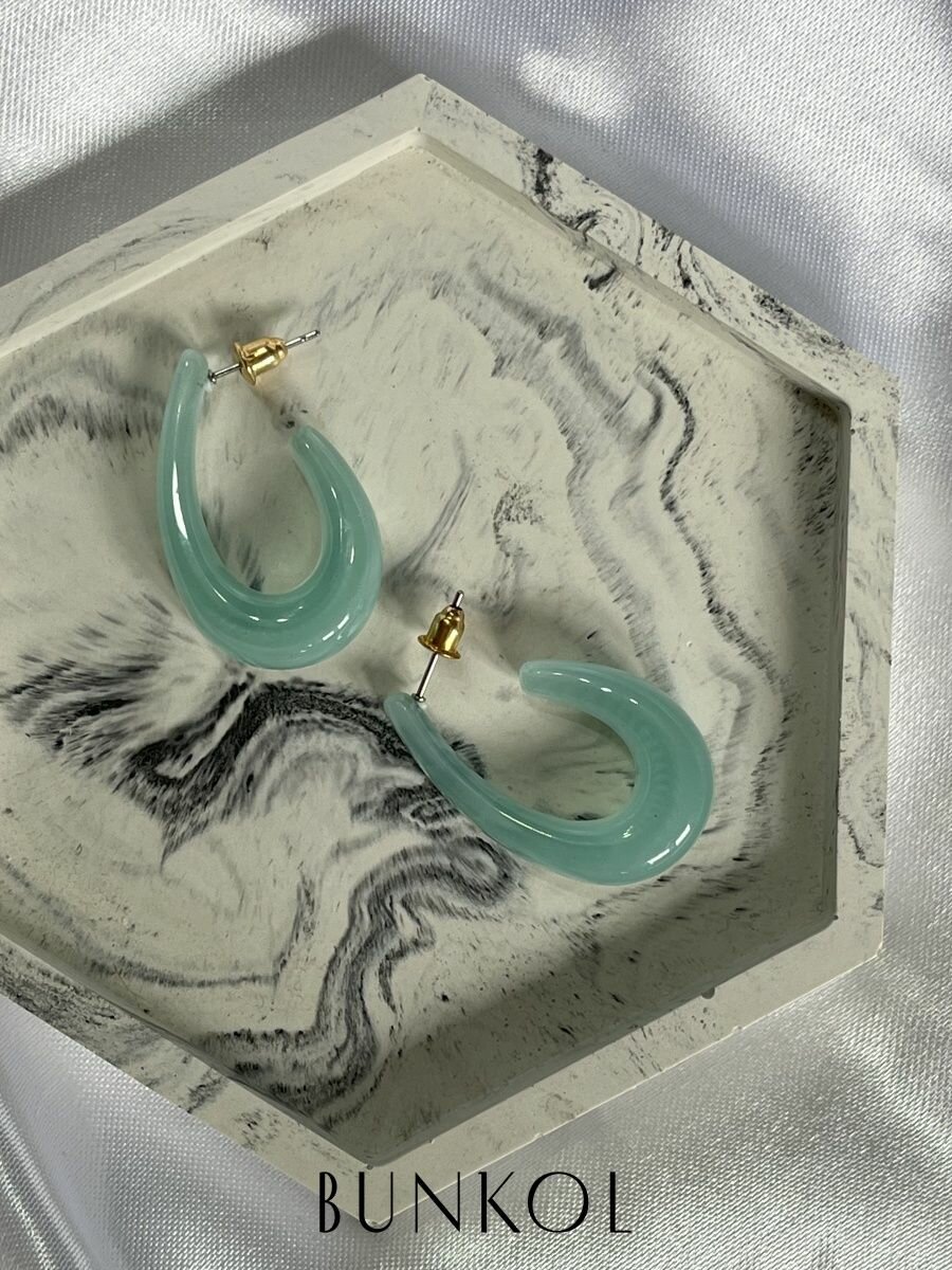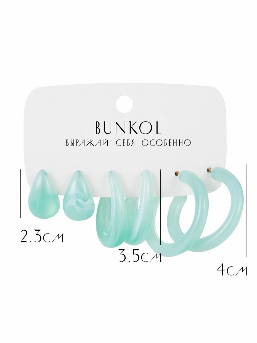 Комплект серег Bunkol, эмаль, пластик, размер 30 мм, зеленый