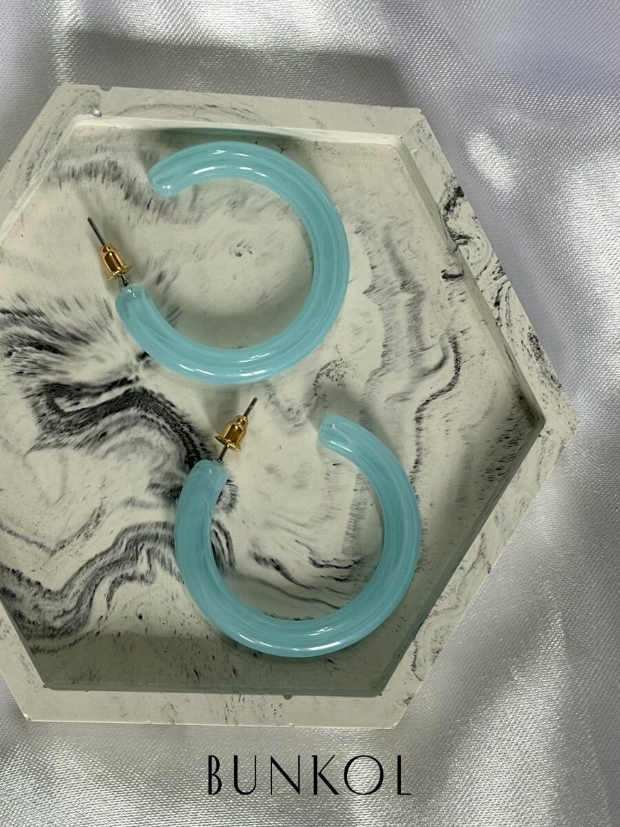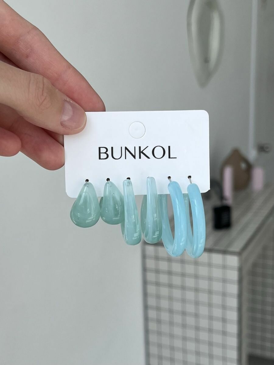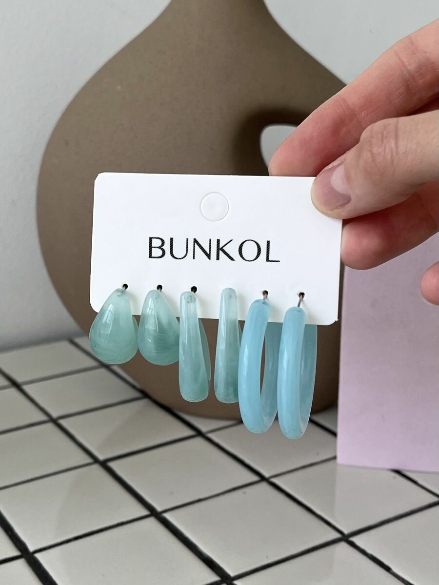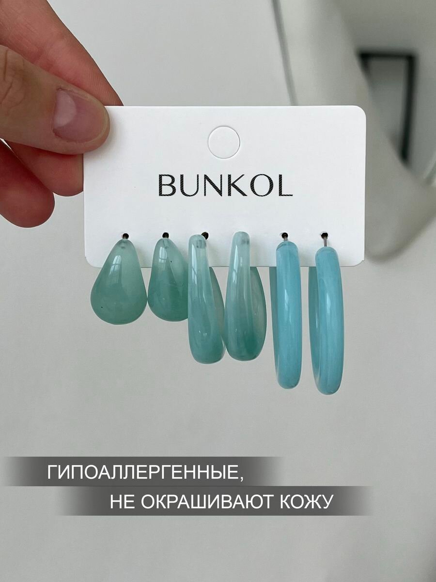Комплект серег Bunkol, эмаль, пластик, размер 30 мм, синий, голубой