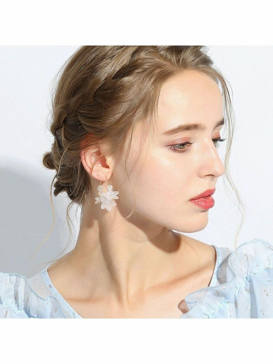 Серьги цветочки и бусины длинные висячие корейские