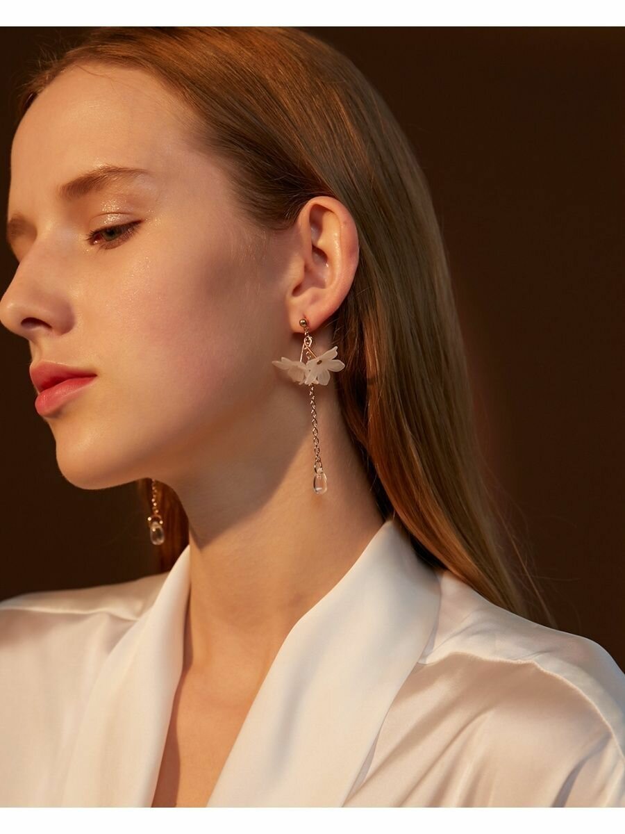 Серьги корея цветы со стразами, длинные висячие асимметрия