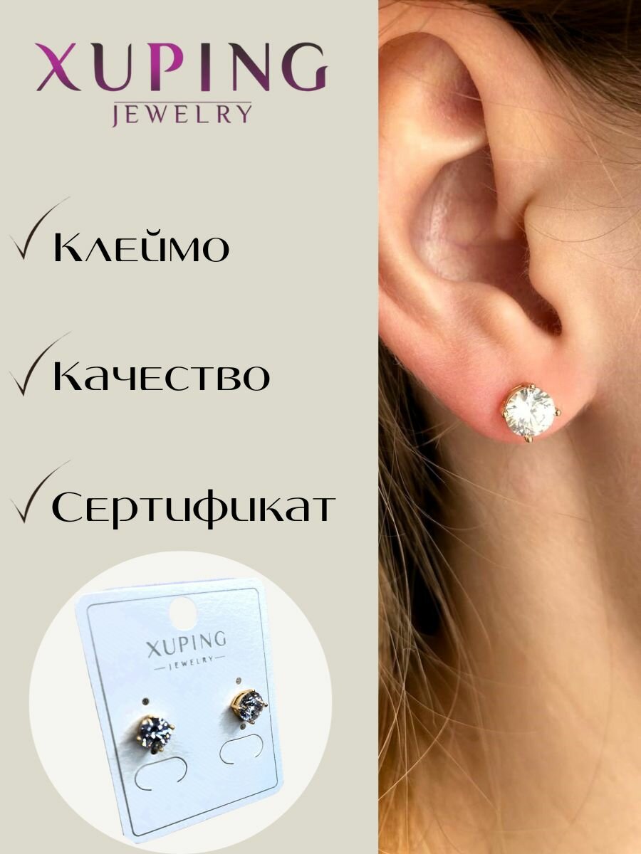 Серьги XUPING JEWELRY бижутерия женская под золото гвоздики / круглые сережки пусеты с фианитами интересное: