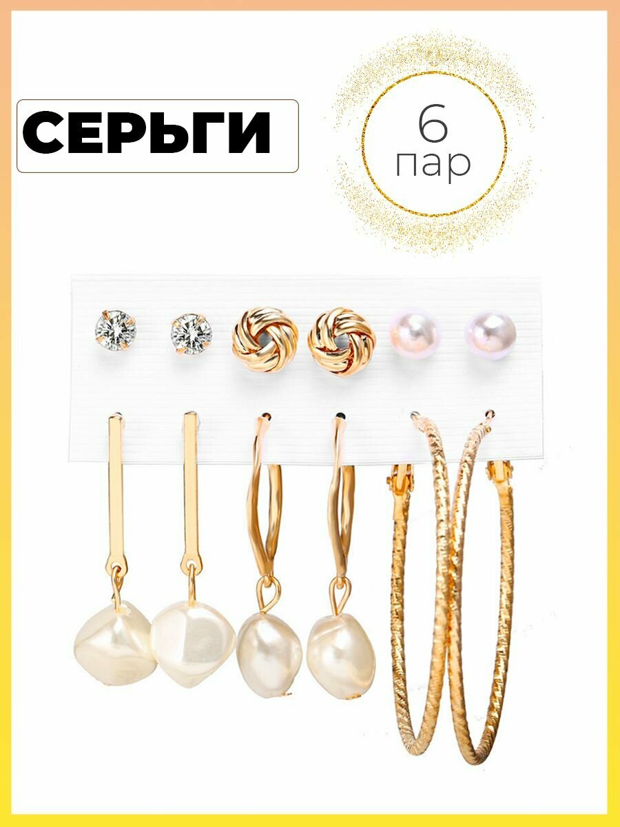 Серьги набор 6 пар/ Сережки для девушек интересное: