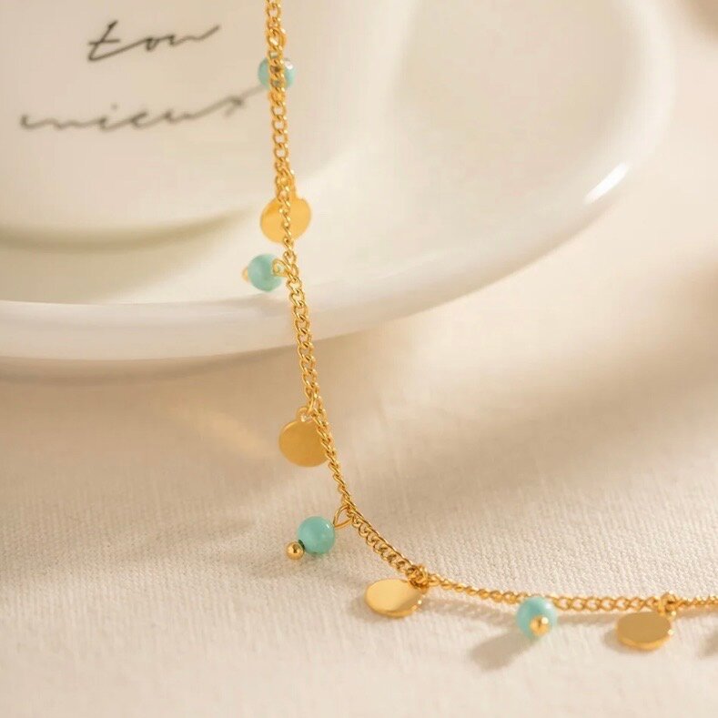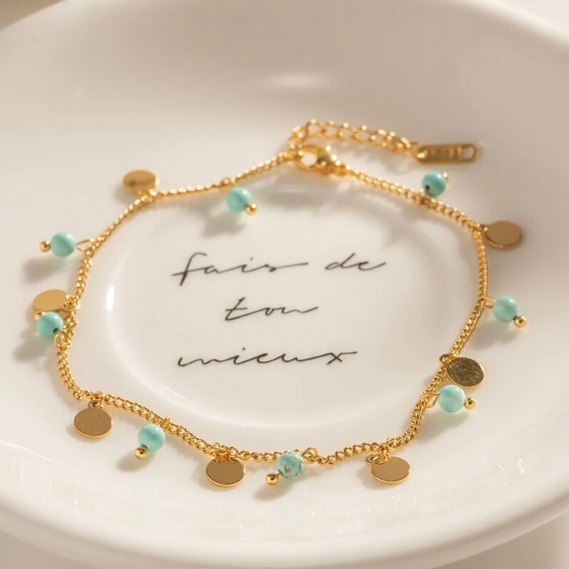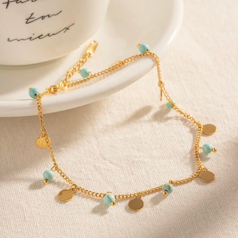 Купить Браслет на ногу позолоченный, бирюзовый