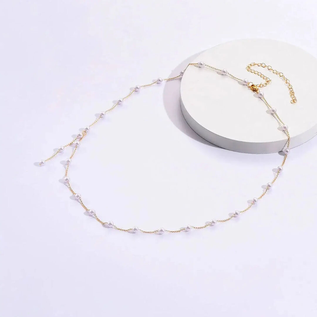 Цепь на пояс талию с жемчугом серебристая