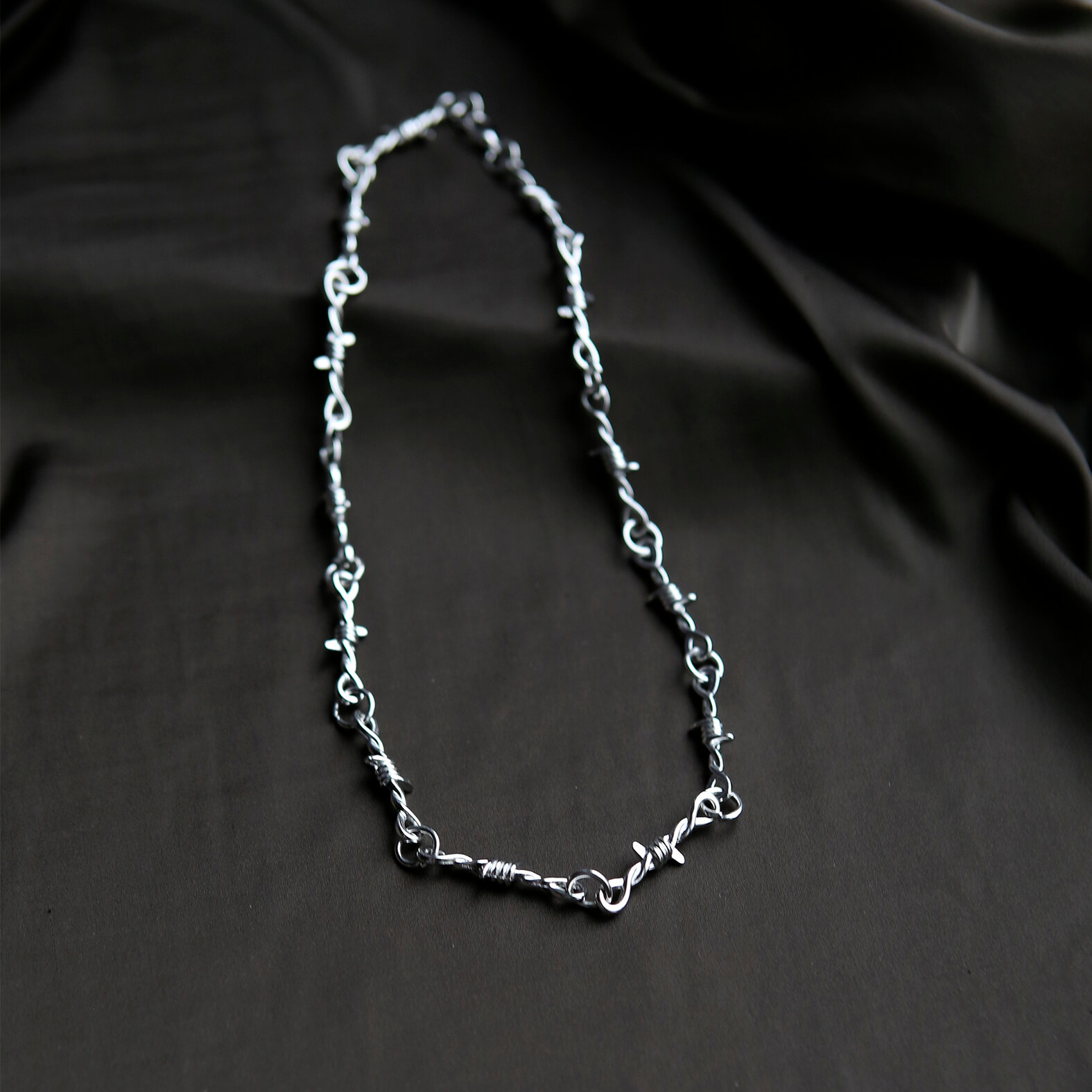 Цепочка на шею колючая проволока Черная, мужская, женская, с карабином