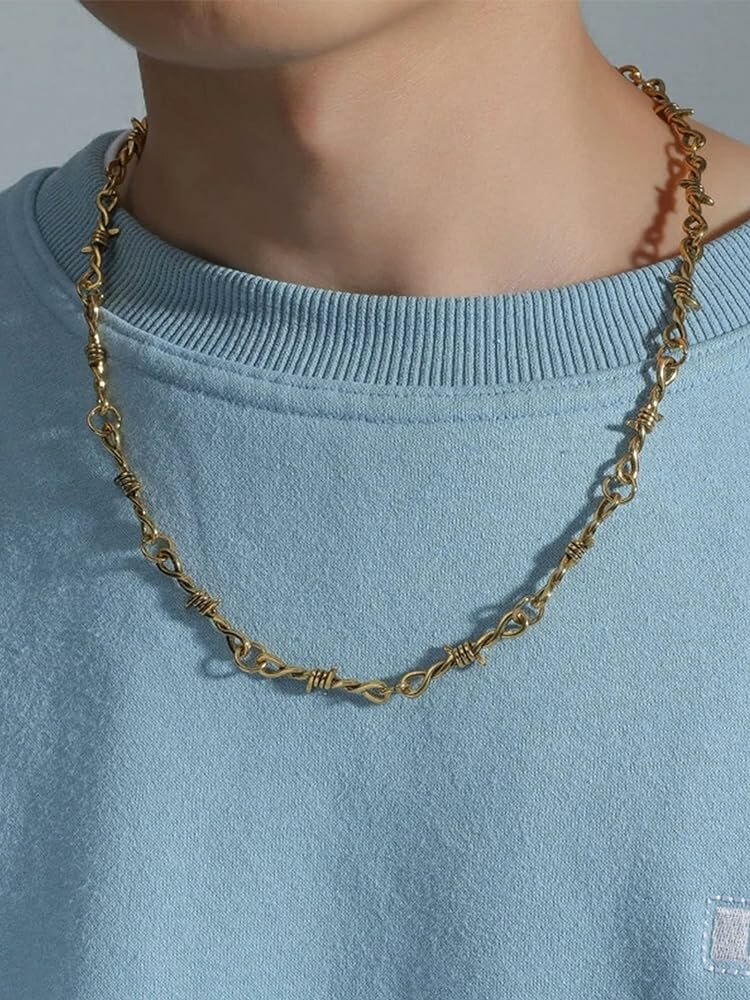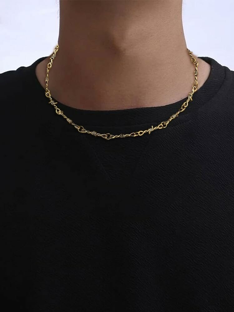Купить Цепочка на шею колючая проволока золотая, мужская, женская, с карабином, украшение унисекс, бижутерия