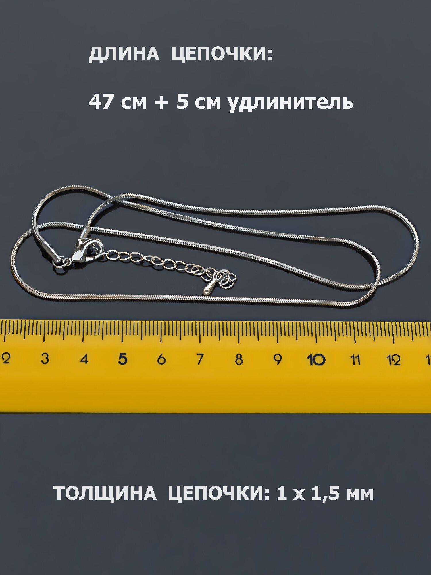 | Комплектация | Цепочка снейк 72см с карабином - 1шт |