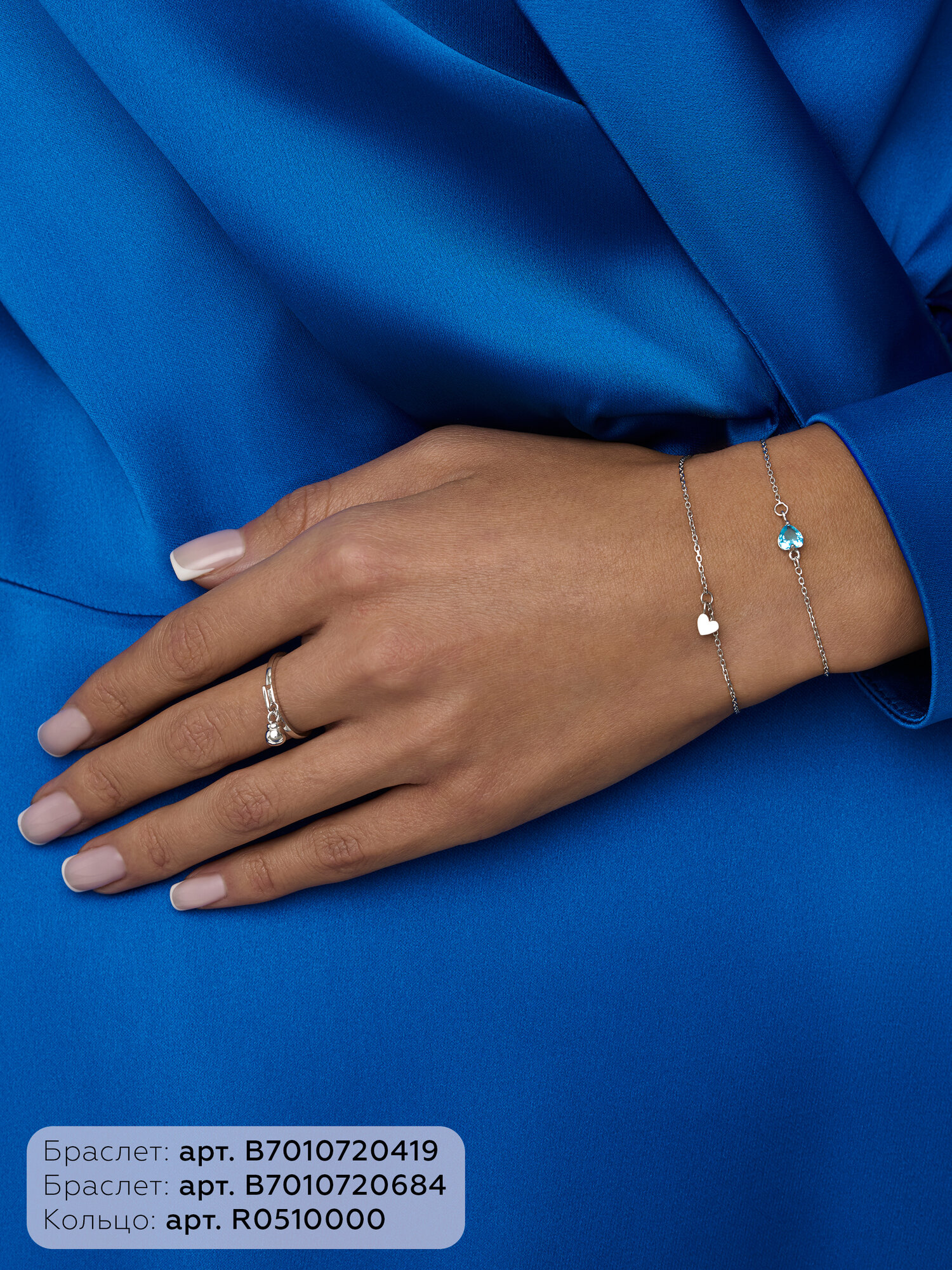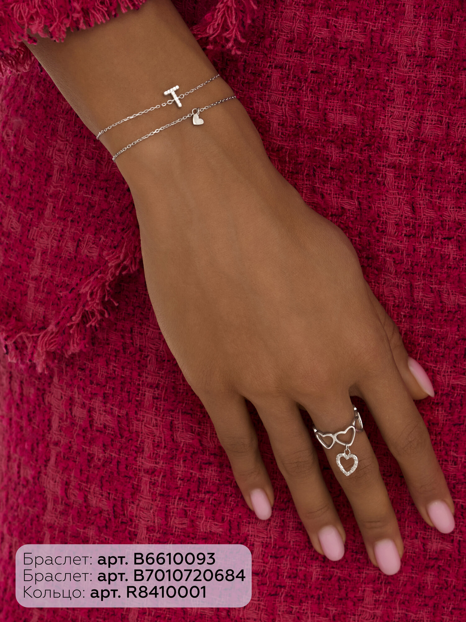 Браслет MIESTILO серебро 925 пробы серебряный на руку тонкий с подвеской сердце
