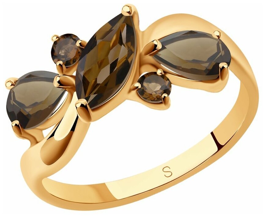 Кольцо SOKOLOV из золочёного серебра с раухтопазами 92011660, размер 18.5