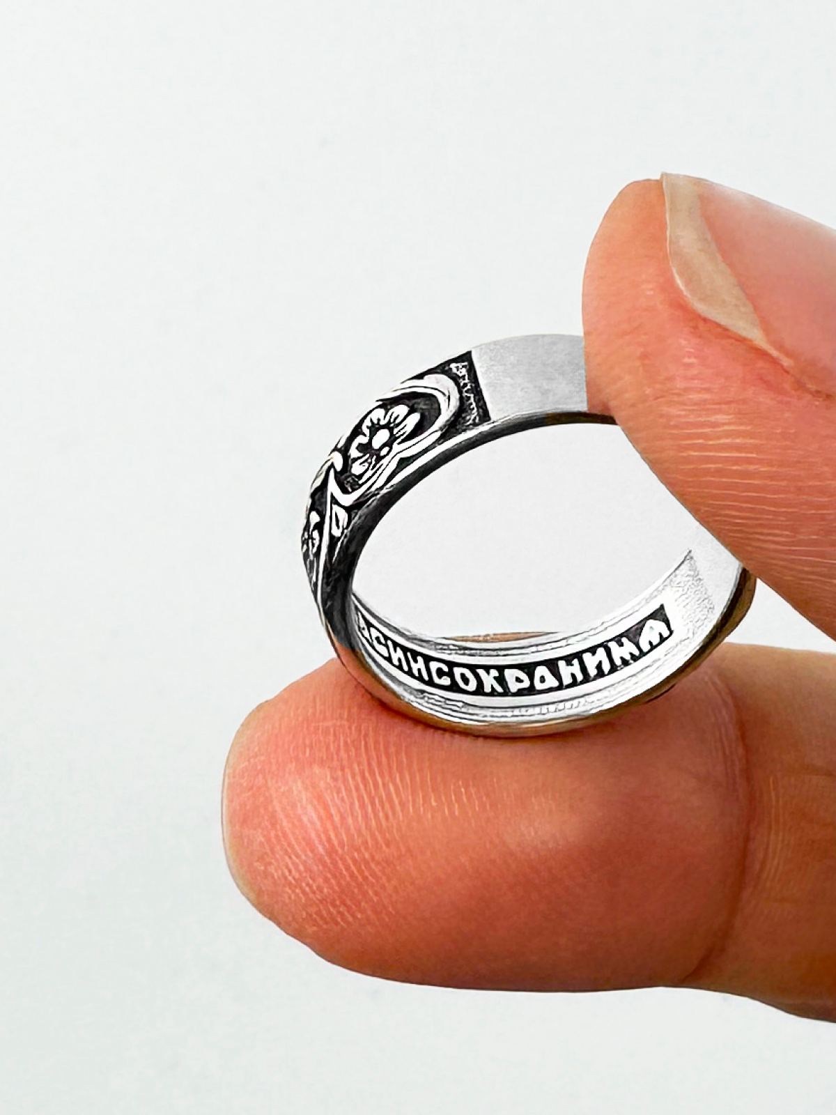 Кольцо женское из серебра 925 с чернением, молитва "Спаси и Сохрани"