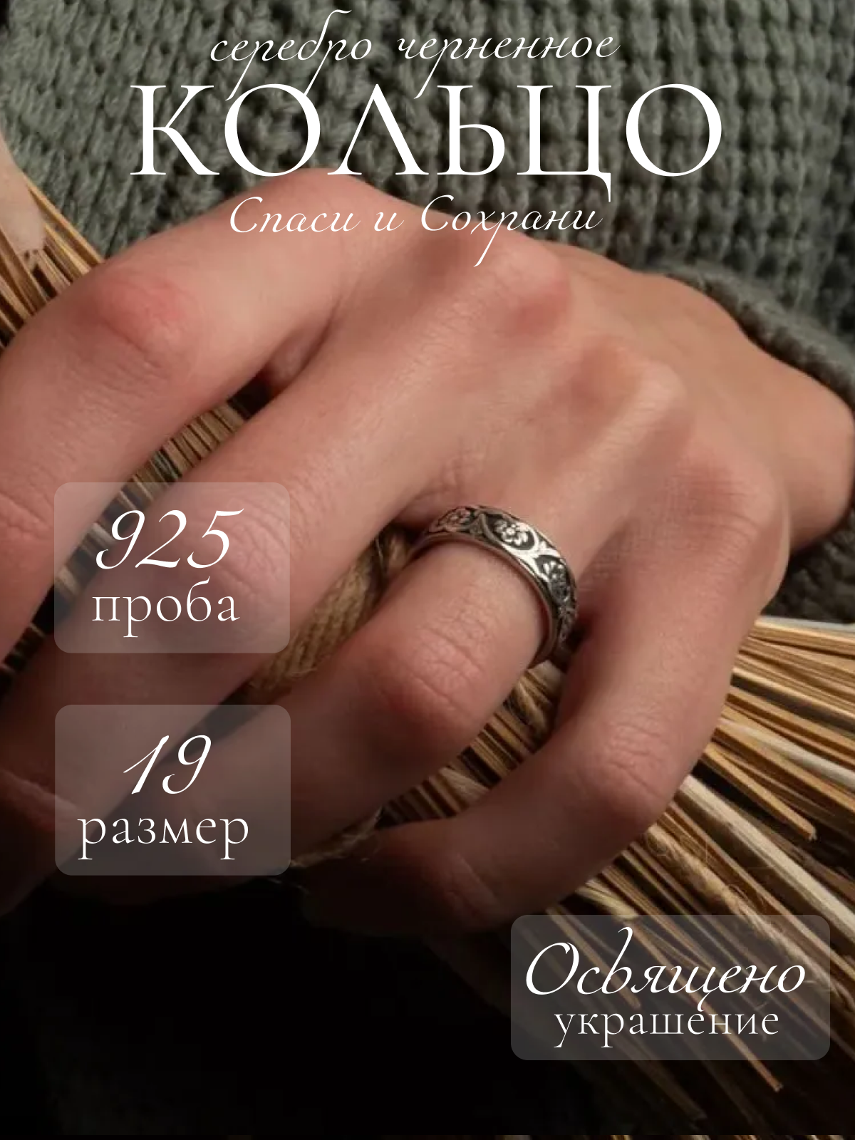 Купить Кольцо Спаси и Сохрани из серебра 925, размер 19, частично черненое, литьё, кольцо помолвочное, обручальное
