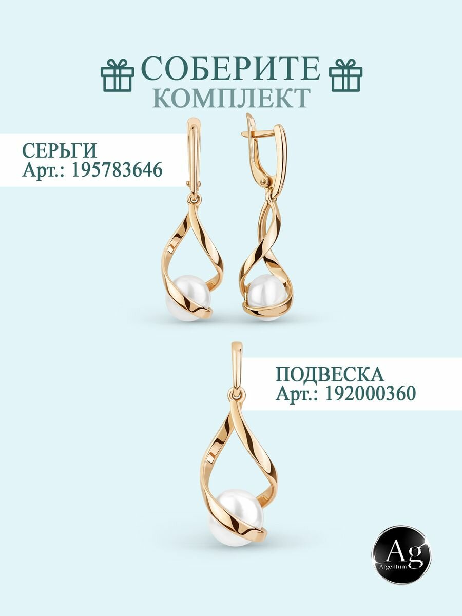 Подвеска Argentum, серебро, 925 проба, золочение, жемчуг, размер 3 см., золотистый