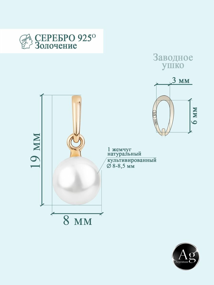 Подвеска на шею с жемчугом серебро золоченое 925 пробы Аргентум