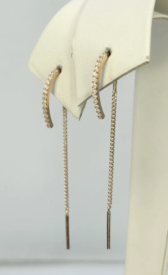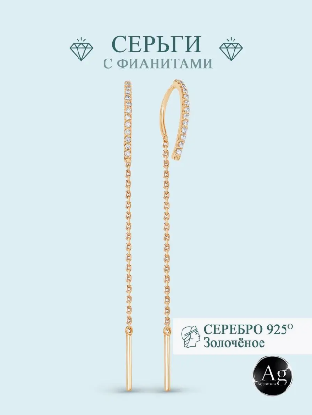 Серьги с фианитами "Протяжки" серебро 925 пробы золоченое интересное: