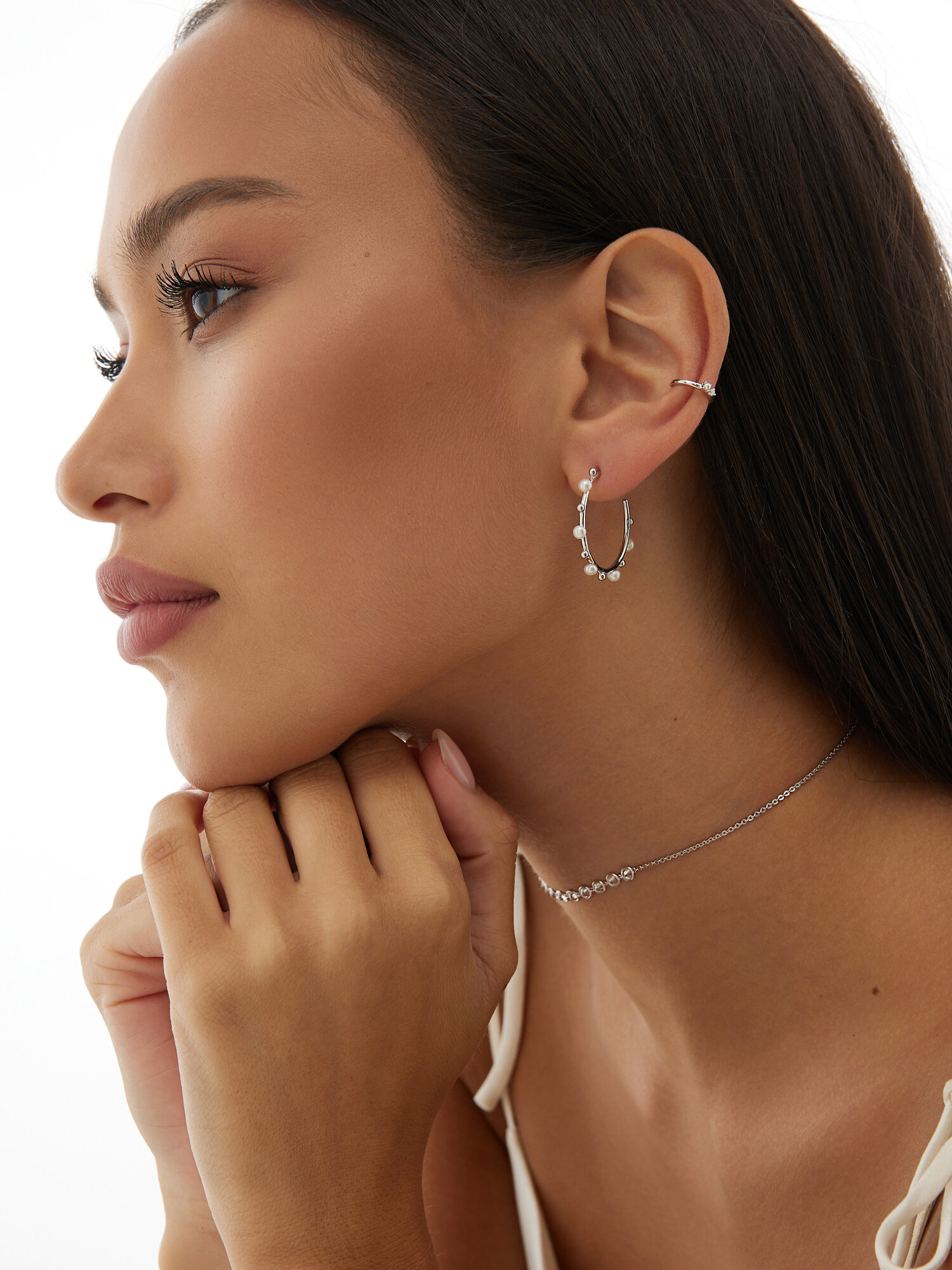 Кафф MIESTILO каффа серебро 925 пробы моносерга из серебра с жемчугом