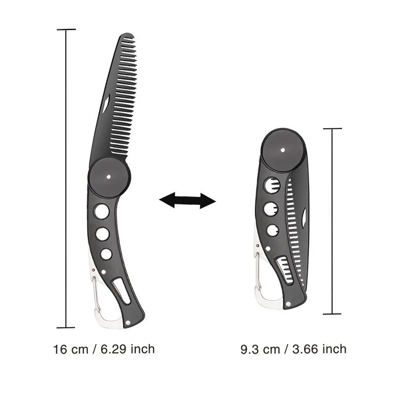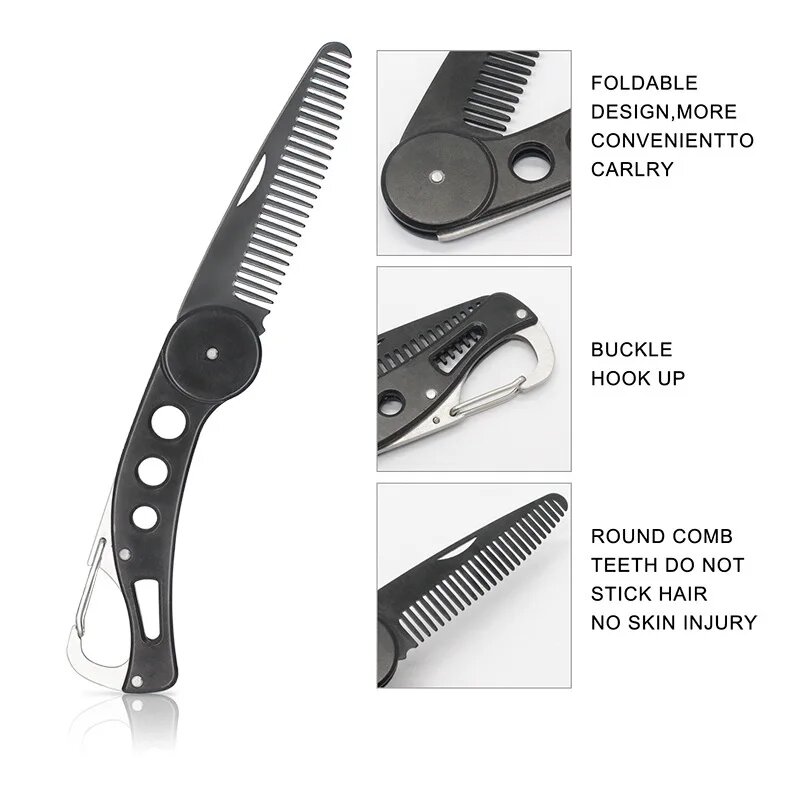 Купить Расческа для бороды складная с карабином, гребень для бороды металлический в чехле (Черный)