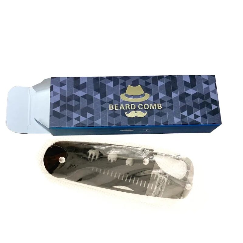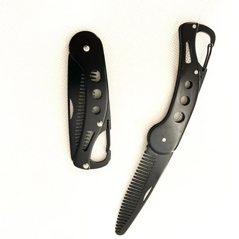 Расческа для бороды складная с карабином, гребень для бороды металлический в чехле (Черный) интересное: