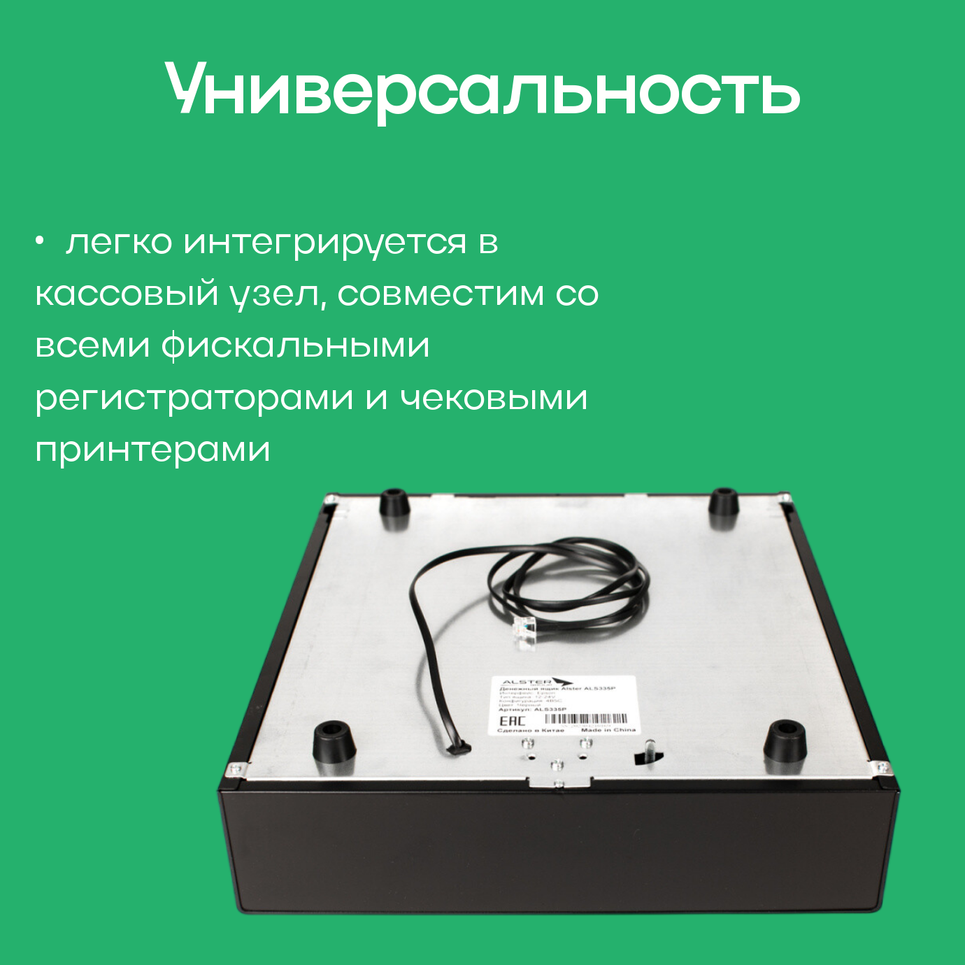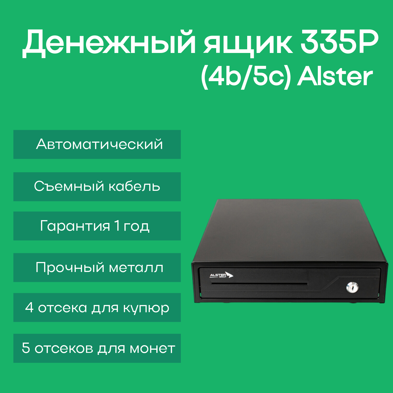 Денежный ящик ALS 335P (4b/5c) Alster, электромеханический, чёрный, Epson интересное: