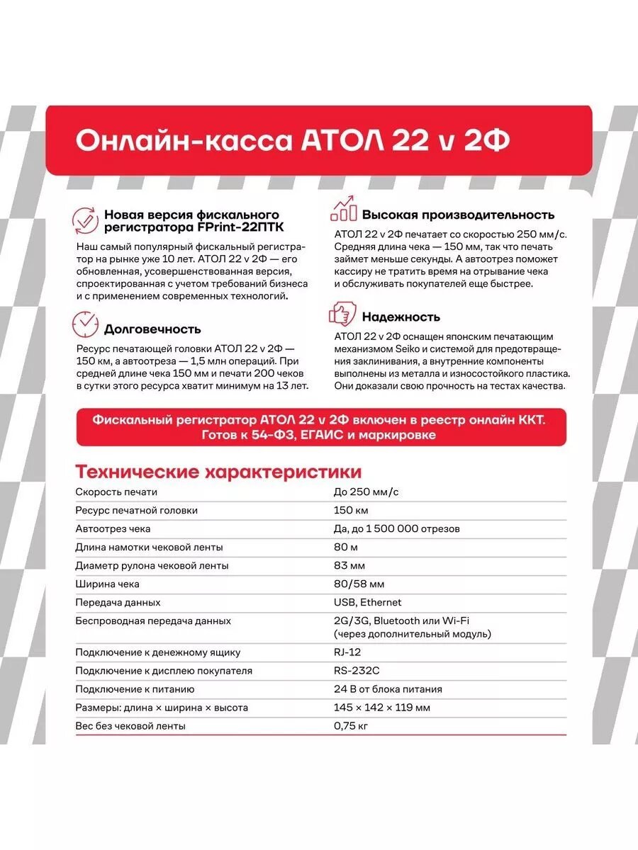 Касса АТОЛ 22 v2 Ф Без ФН интересное: