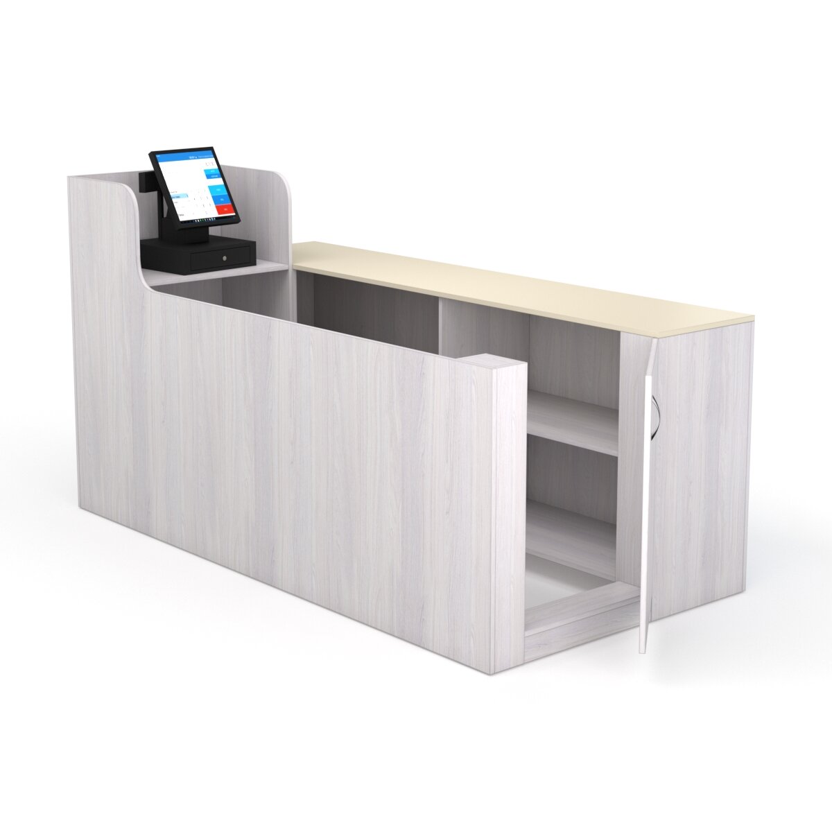 Купить Кассовый стол "ЛЕНТА" №2 правый, Ясень Анкор и Крем Вайс 200 x 100 x 110 см
