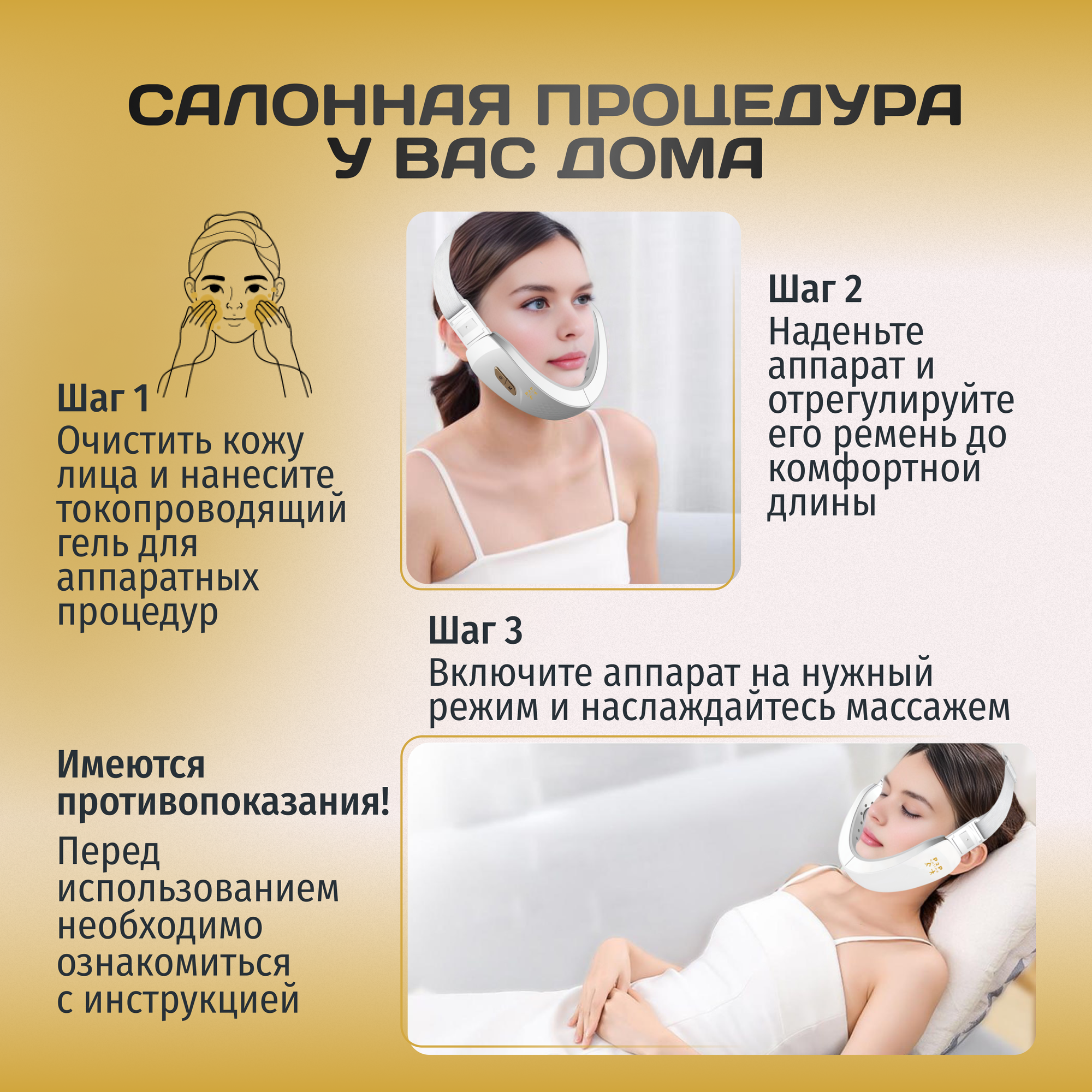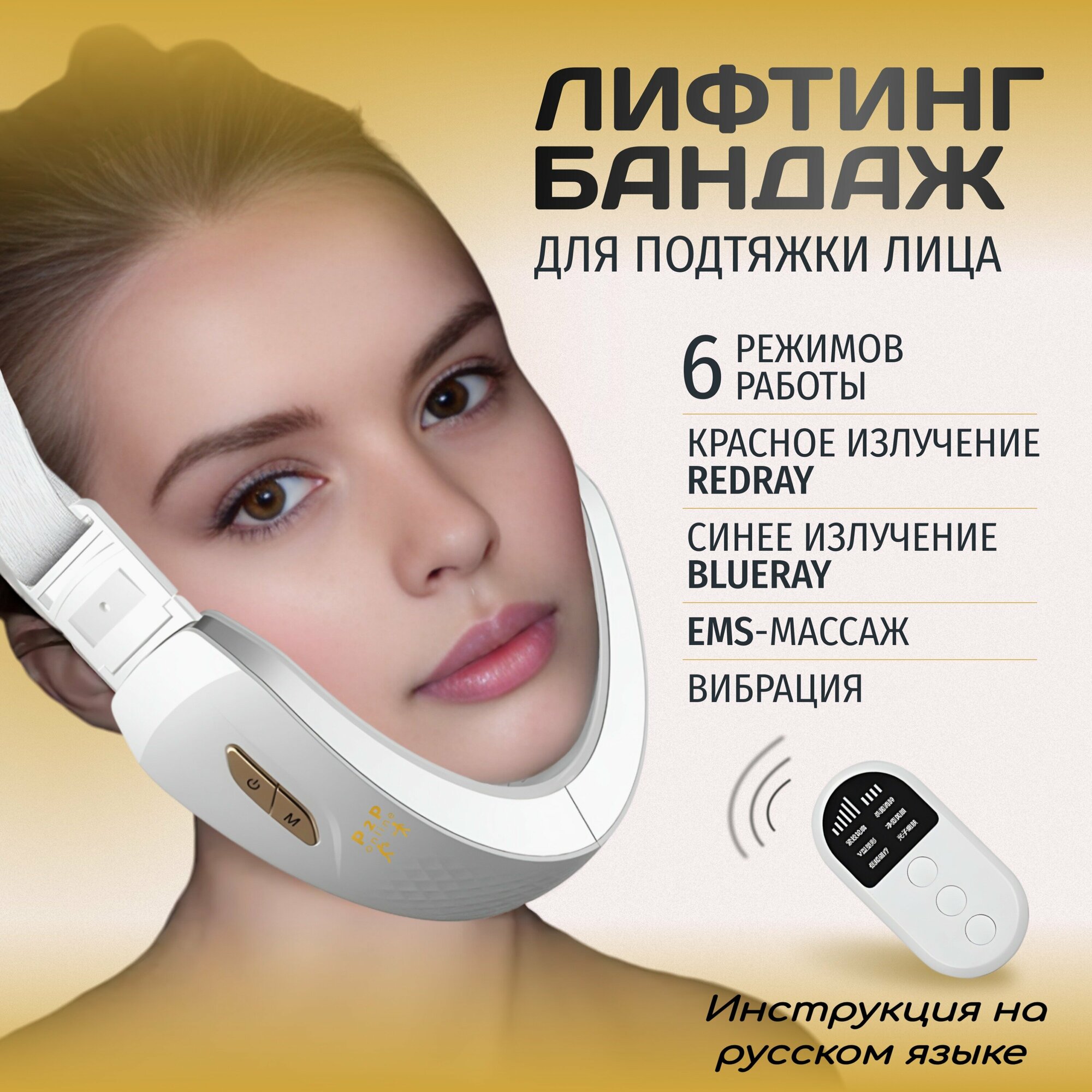 Купить Премиум лифтинг массажер от 2го подбородка. EMS Бандаж Микроток с нагревом и хромотерапией