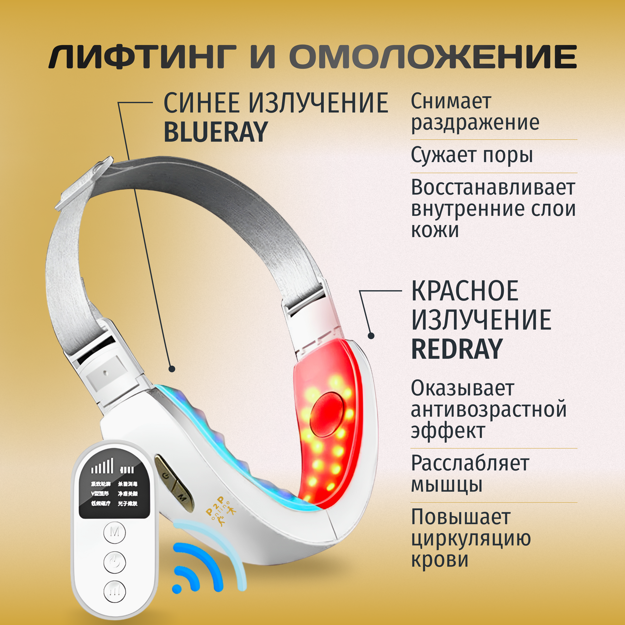 Премиум лифтинг массажер от 2го подбородка. EMS Бандаж Микроток с нагревом и хромотерапией интересное: